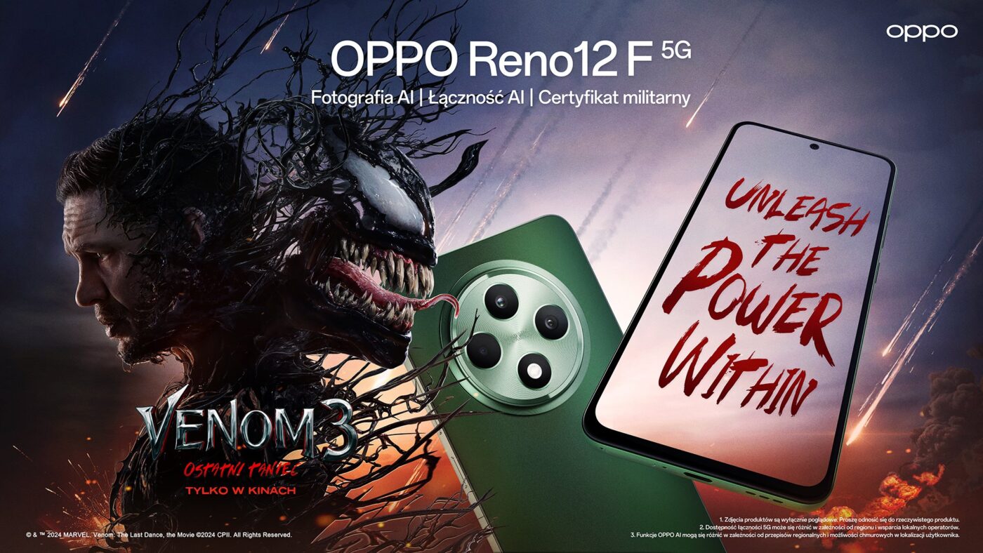 OPPO wkracza do świata superbohaterów, zostając partnerem filmu Venom 3: Ostatni taniec, który pojawi się w polskich kinach już 25 października br. Z tej okazji producent promuje swoją najnowszą serię smartfonów OPPO Reno12 5G, reklamowaną hasłem „UżywAI – to proste”, która wyróżnia się zaawansowanymi funkcjami GenAI, możliwościami fotograficznymi oraz zwiększoną wytrzymałością.