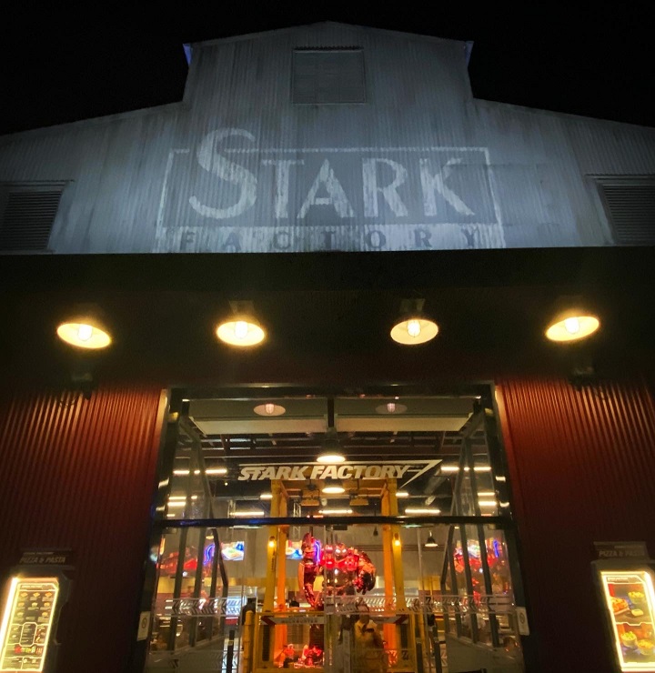 Na terenie Campusu znajdziemy również duży bar Stark Factory. To miejsce obowiązkowe dla fanów dużych eksponatów. Na wejściu bowiem wita nas monumentalny pancerz HulkBuster, przy którym większość zwiedzających robi sobie zdjęcia. W samym barze mamy szeroki wybór dań. Na pochwałę w szczególności zasługują makarony. Ceny za posiłek wahają się pomiędzy 8, a 15 euro. Nie zastaniemy tu jednak potraw tematycznie powiązanych ze światem MCU, jest to jednak o wiele bardziej budżetowa opcja względem Pym Kitchen.