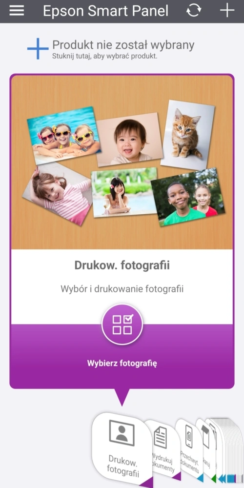 Zrzuty ekranu z aplikacji Epson Smart Panel