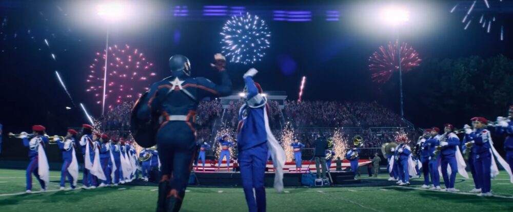 Pierwszy kadr z Johnem Walkerem, czyli tak zwanym U.S. Agentem. Rząd właśnie jemu nakazał przejęcie funkcji i stroju Kapitana Ameryki. W zwiastunie widzimy, że machina propagandowa robi wszystko, by zrobić z niego nową ikonę. Bohater w komiksach również posiadał nadludzkie zdolności fizyczne, ale mimo wszystko do poziomu Steve’a nie dorastał. Jednak to wciąż poważny, wymagający i groźny przeciwnik.