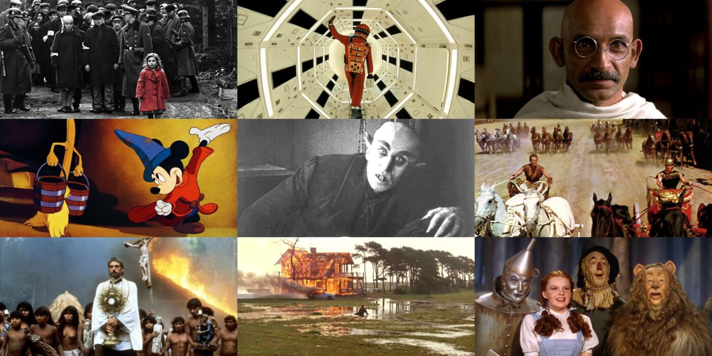 Ilustracja wprowadzenia: kolaż scen z filmów Lista Schindlera, Nosferatu, Misja, Fantazja, Gandhi, Czarnoksiężnik z Oz, Ben-Hur, 2001: Odyseja kosmiczna, Ofiarowanie