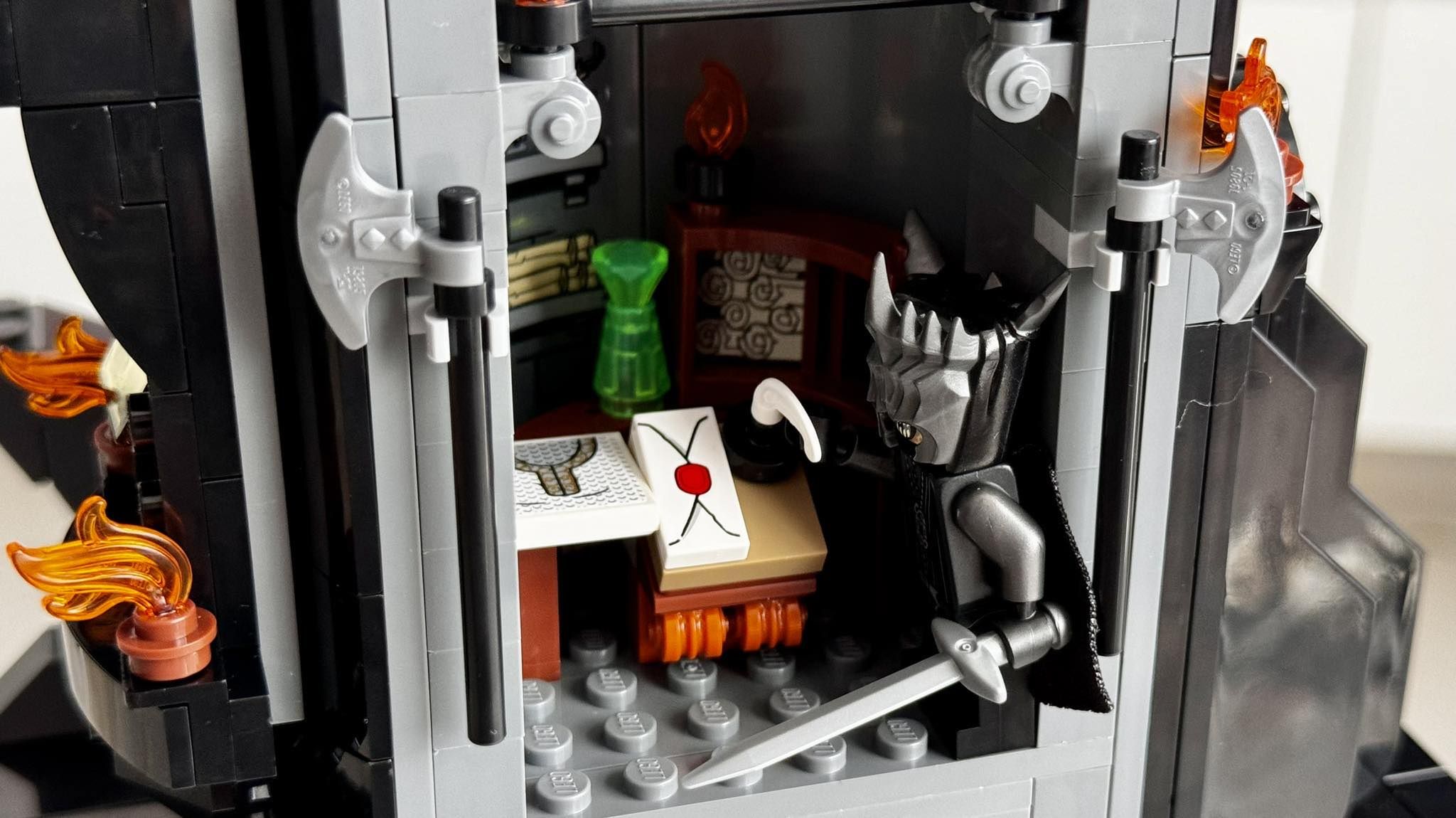 Zestaw oferuje wiele ciekawych, interaktywnych funkcji. Czarna brama otwiera się automatycznie za pomocą ukrytego pokrętła, a sala tronowa kryje tajemną komnatę z Palantirem. Największą atrakcją jest jednak Oko Saurona, które można ustawić pod różnymi kątami. Oko jest podświetlane, choć efekt ten może wydawać się nieco rozczarowujący (musimy przytrzymywać przycisk żeby świecił – zdecydowanie brakuje mi przycisku wł/wył).