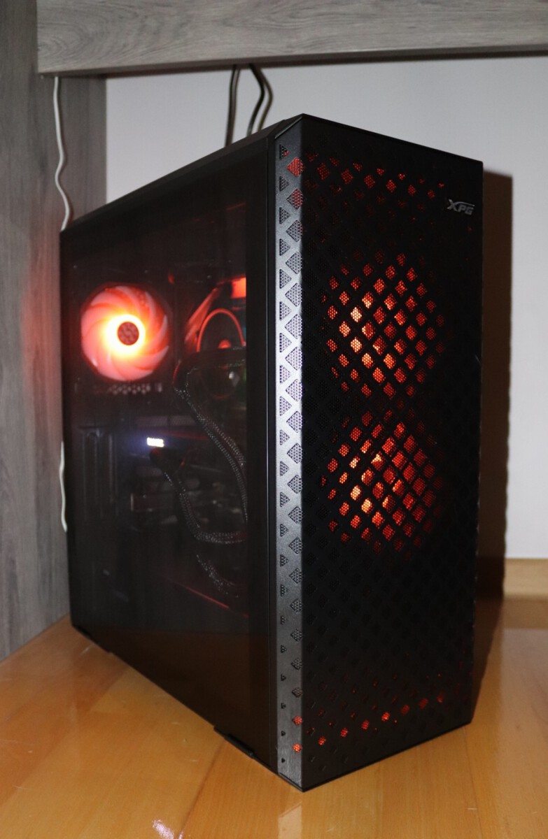 Co wyróżnia obudowę XPG Defender Pro? Zaczynając od rewelacyjnego designu i budowy, panel boczny wykonany jest ze szkła hartowanego, które pozwala nam na wgląd w „środek” komputera podczas jego pracy. Jest to znakomite rozwiązanie, jeśli przewidujemy oświetlenie RGB w różnych podzespołach – podczas wieczornej sesji robi to niesamowitą atmosferę. Perforowany panel przedni natomiast jest cechą, która nada stanowisku komputerowemu nieco elegancji, a zarazem jego magnetyczne mocowanie ułatwia pielęgnację i dostęp do wentylatorów. Bardzo ważne przy pracy jednostki jest chłodzenie, a w przypadku Defender Pro składają się na nie 3 fabrycznie zamontowane i podświetlane wentylatory, które zapewniają odpowiednią cyrkulację powietrza. Oprócz tego obudowa posiada filtry antykurzowe które niwelują dostawanie się brudu do środka urządzenia. Wykonana z jakościowych materiałów sprawia wrażenie bardzo wytrzymałej, co jest kluczowe, by komputer nie był narażony na żadne niechciane usterki mechaniczne.