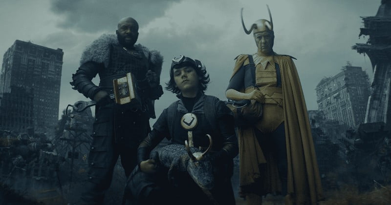 Nie do końca! Scena po napisach pokazuje Lokiego, który budzi się w zrujnowanym mieście i głośno zastanawia się, czy tak naprawdę nie żyje. „Jeszcze nie” – mówi tajemniczy ktoś charakterystycznym tonem – „Ale będziesz, chyba że pójdziesz z nami”. Spogląda w górę, by zobaczyć trio nowych wariantów Lokiego – zakwalifikowanych jako Classic Loki, Kid Loki oraz potężny Boastful Loki. Jest też zabawny krokodyl z uroczą koroną Lokiego.