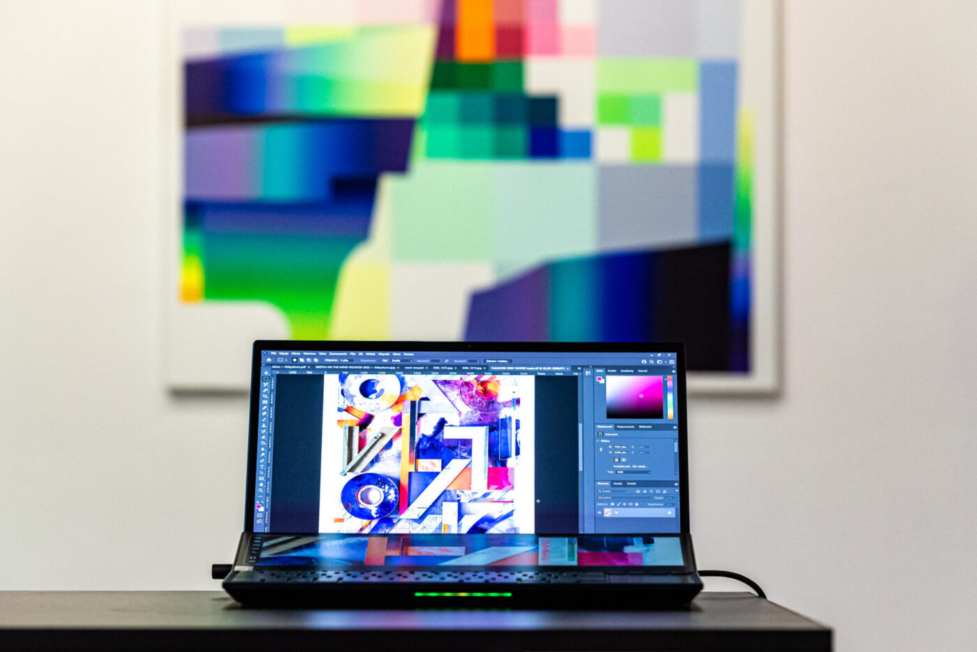 Łukasz ‘NAWER’ Habiera (sztuki artystyczne z wykorzystaniem Adobe Photoshop oraz Lightroom na laptopie ASUS) zaprezentował wyjątkowe dywany zaprojektowane na zbliżającą się wystawę w San Francisco, kilka innych unikalnych projektów graficznych oraz na żywo malował kolejną swoją pracę, która trafi na wystawę w Stanach Zjednoczonych. Dzięki pracy na laptopie wyposażonym w wyświetlacz z certyfikatem PANTONE Łukasz może przygotowywać swoje projekty bez obaw o efekt końcowy – kolory na ekranie dokładnie odpowiadają tym na wydruku.