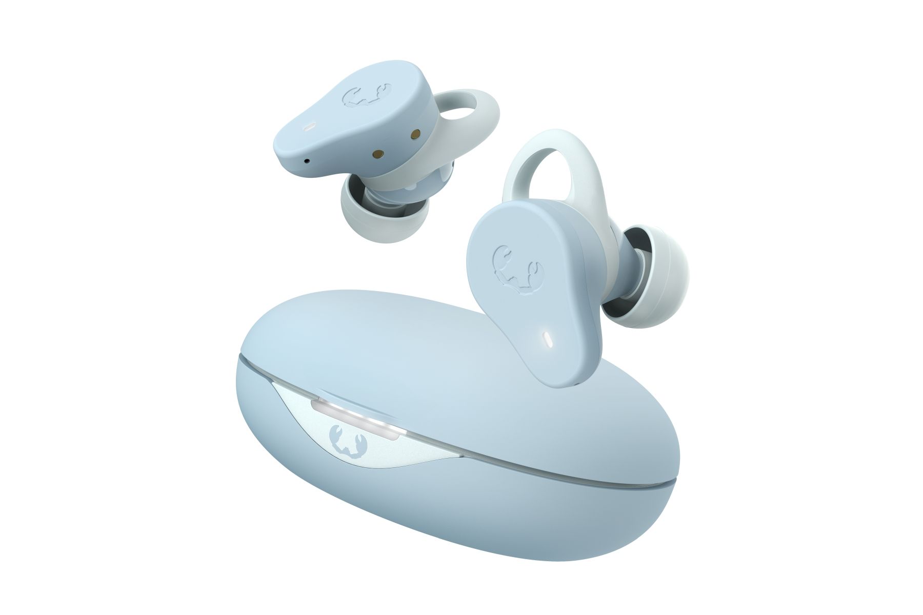 Słuchawki douszne Bluetooth Fresh ‘n Rebel Twins Rush powstały z myślą o sportowcach. Ich wytrzymała, gumowana i solidna konstrukcja jest w pełni wodoodporna (stopień IP57, czyli ochrona przed potem, kurzem i skutkami tymczasowego zanurzenia w wodzie). Oferują hybrydową aktywną redukcję szumów, tryb dźwięków otoczenia, redukcję szumu wiatru oraz dwa wbudowane mikrofony ENC do rozmów telefonicznych. Z możliwością pracy 36 godzin (dzięki dołączanemu etui) pozwolimy sobie na naprawdę długi i wyczerpujący trening, oferują też 9 godzin nieprzerwanej pracy po wyjęciu z futerału. Warto podkreślić, że wystarczy 5 minut ładowania słuchawek, aby uzyskać godzinę odtwarzania. Mamy do wyboru trzemy rozmiary haczyków dla idealnego dopasowania. Katalogowa cena tych „pchełek” wynosi 459,90 zł.