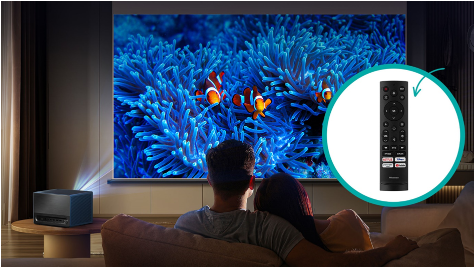 Projektor laserowy oferuje również funkcję Smart TV (znany dobrze i stale rozbudowywany system VIDAA), dzięki której możemy korzystać z różnorodnych aplikacji i serwisów streamingowych i otrzymujemy dostęp do obszernej biblioteki treści multimedialnych.