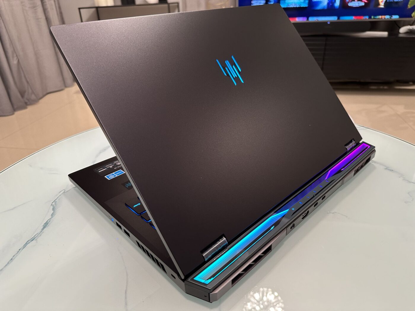 Predator Helios 18 jest wyposażony w procesor Intel Core i9-14900HX z 24 rdzeniami o taktowaniu od 1.6 – 5.8 GHz oraz kartę graficzną NVIDIA GeForce RTX 4090 Laptop z 16 GB VRAM. Do tego wszystkiego mamy 32GB pamięci RAM DDR5-5600 oraz 2TB dysk NVMe-SSD. Nic więc dziwnego, że w testach benchmarkowych PC Mark 10, osiąga on wyniki na poziomie gamingowych komputerów stacjonarnych. Dodatkowo z włączonym DLSS w niektórych grach można bez problemu osiągnąć 1,5 raza większą liczbę klatek na sekundę, co przy ekranie 250 Hz daje niesamowite wrażenia z rozgrywki.
