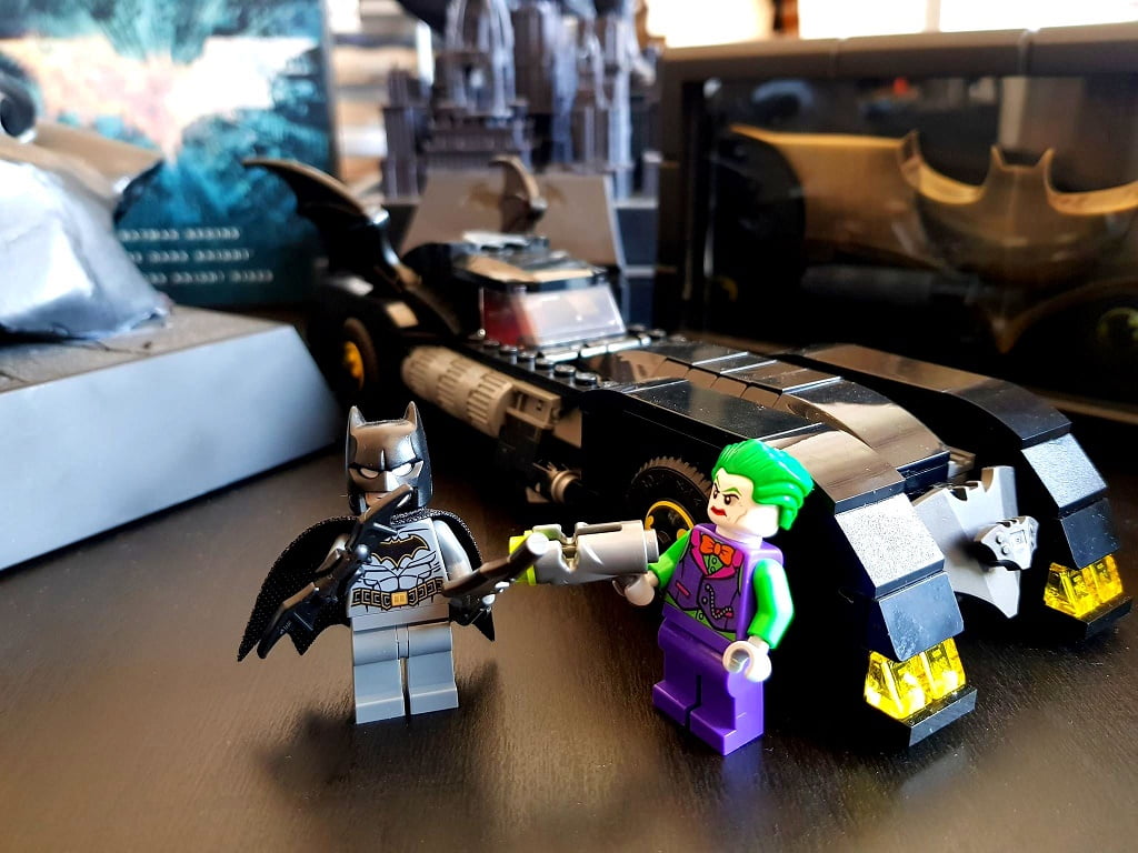 Składane miotacze klocków ukryte w samochodzie przydadzą się do walki z Jokerem, który uzbrojony jest w swój własny miotacz. W tym zestawie LEGO Batman znajdują się dwie minifigurki oraz 10 elementów bojowych, które dzieci mogą doczepiać do modeli, minifigurek i broni.