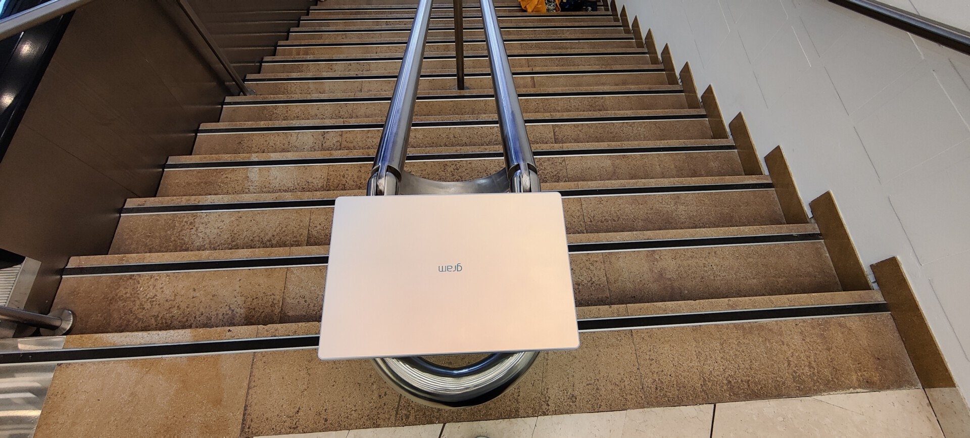 Ale oczywiście sam wygląd to fasada, która potrafi być istotna, lecz nie miałaby w tym przypadku większego znaczenia, gdybyśmy nie byli w stanie eksplorować z nią kolejnych punktów na festiwalowej mapie. Na szczęście niewielkie rozmiary wraz z bardzo drobną wagą pozwolą nam bez większych problemów włożyć produkt do torby lub plecaka nawet z dodatkowymi przedmiotami i ledwie poczuć różnicę. Do tego LG gram Style jest niesamowicie smukły, przy zamknięciu niewiele różniąc się pod tym kątem od na przykład smartfona. To czyni go znakomitym towarzyszem czy to między pokazami, czy do kawiarni.