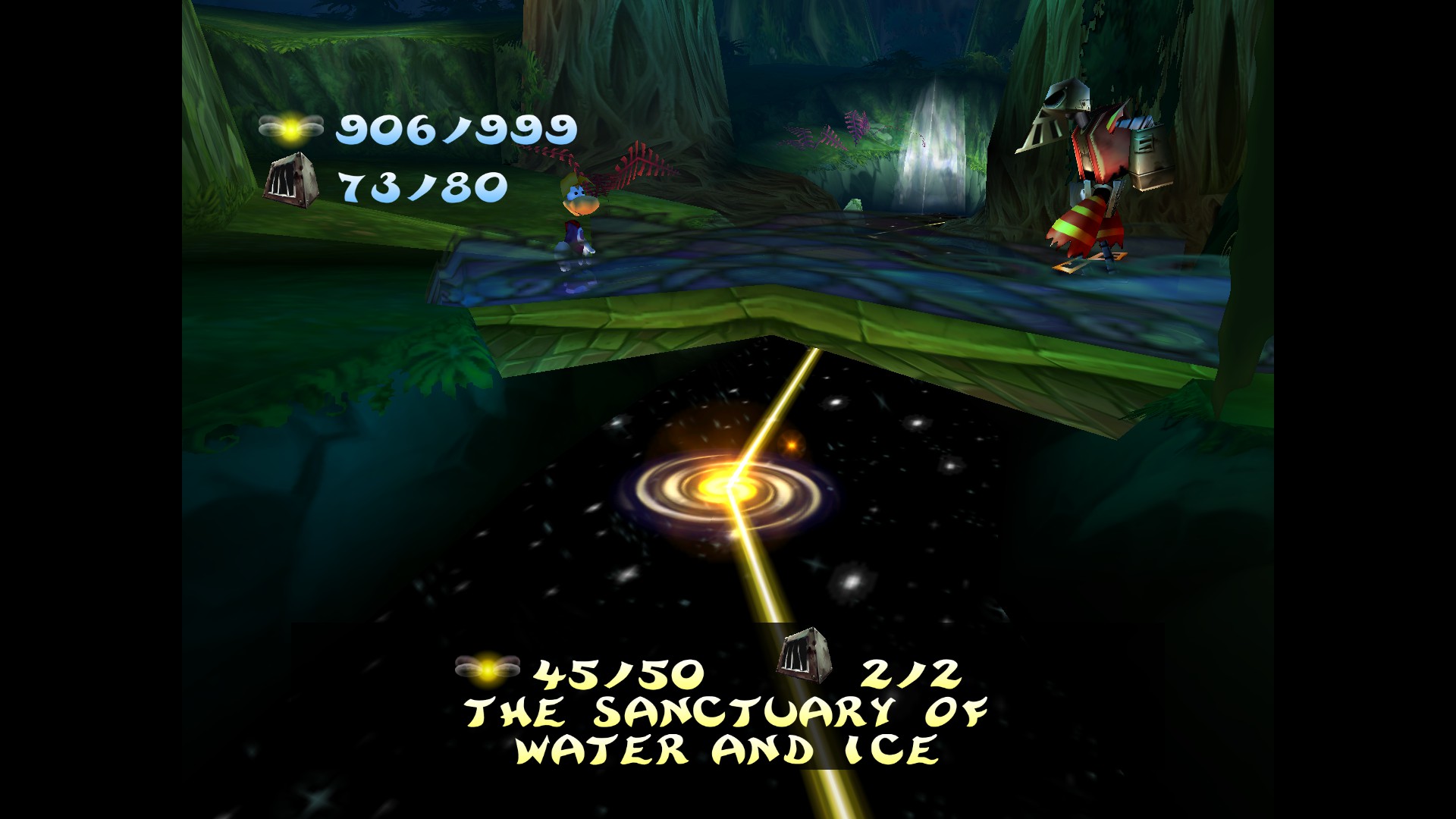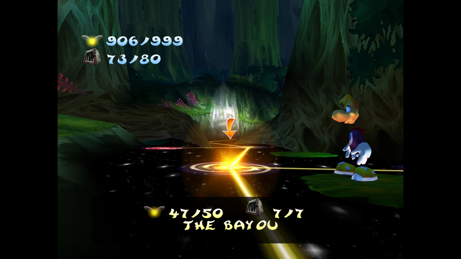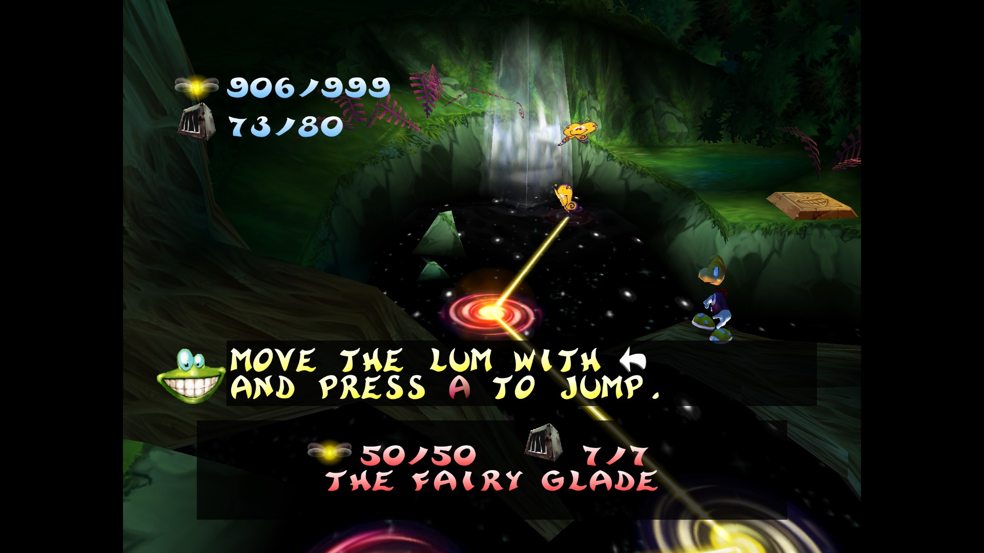 Na jego drodze szybko staje jednak (z deczka irytujący) Murfy, który odtąd staje się naszym przewodnikiem. Szybko zdobywamy naszą pierwszą klatkę (gdzie czają się lumy lub Teensieny umiejące tworzyć portale między krainami), w której znajduje się żółty lum — jeden z 1000, które składały się na tak zwane Serce Świata. Po spotkaniu zatroskanych dzieci Globoxa Rayman postanawia odnaleźć Ly, która została schwytana przez Robo-Piratów i przetrzymywana jest na terenie Czarodziejskiej Polany.