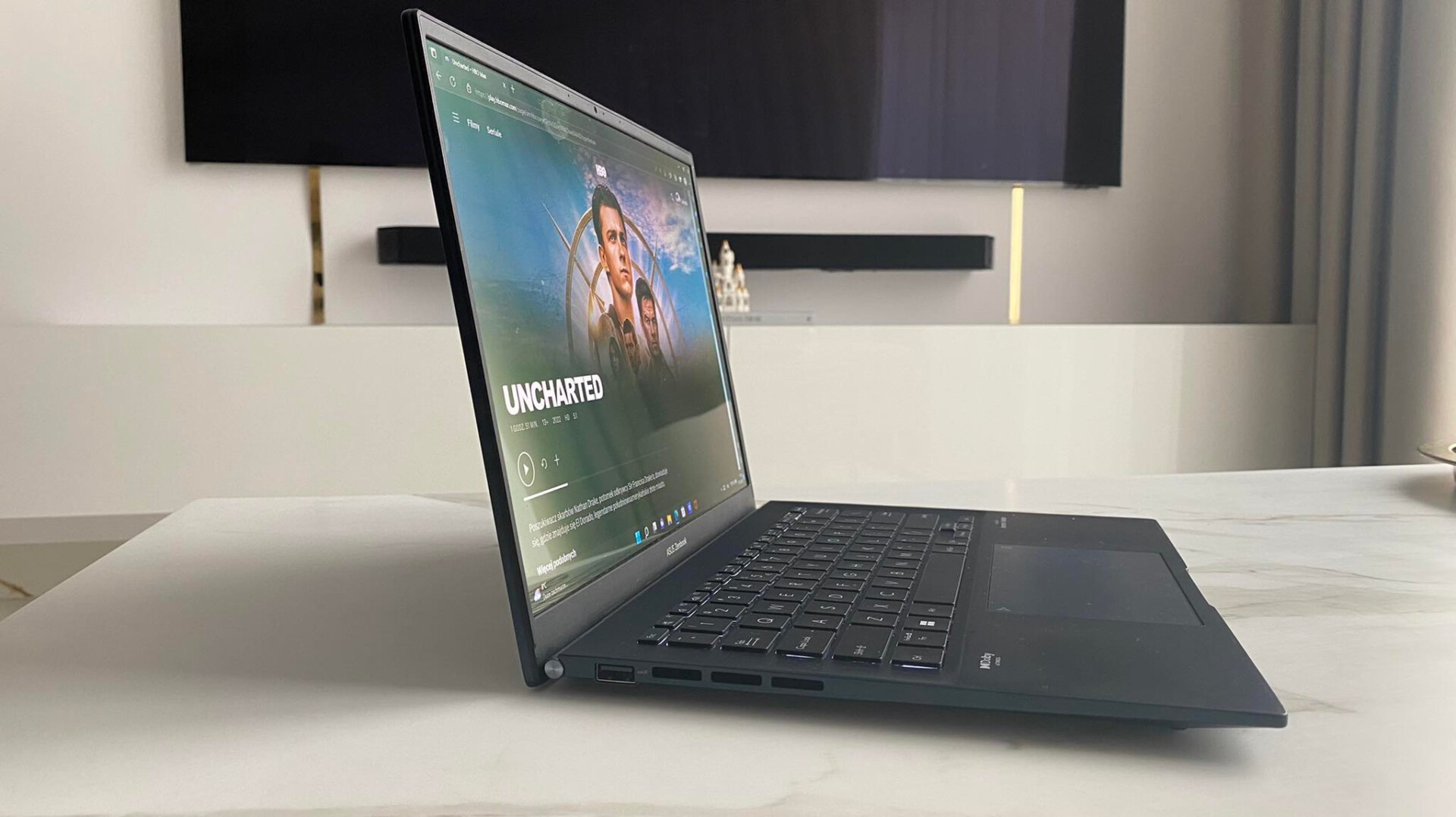 Pomimo niewielkich gabarytów, Zenbook 13 oferuje masę dogodnych funkcji i jest przygotowany na praktycznie każdą ewentualność. Przykładowo, cienka budowa nie przeszkadza mu posiadać portu HDMI, USB-C czy czytnika kart MicroSD, przygotowując na każdą ewentualność. Całość wieńczy znakomita wydajność i oczywiście przepiękny wyświetlacz OLED, gwarantujący niesamowite wrażenia wizualne w pociągu, samolocie czy na dłuższej przerwie w pracy. Co więcej, sprzęt jest zgodny z technologią Intel EVO, co z miejsca gwarantuje wydajność na najwyższym poziomie pomimo niewielkich gabarytów i rzecz jasna szybsze działanie sieci oraz dłuższy czas pracy baterii. W efekcie otrzymujemy znakomite narzędzie do pracy zdalnej i o znacznych osiągach.