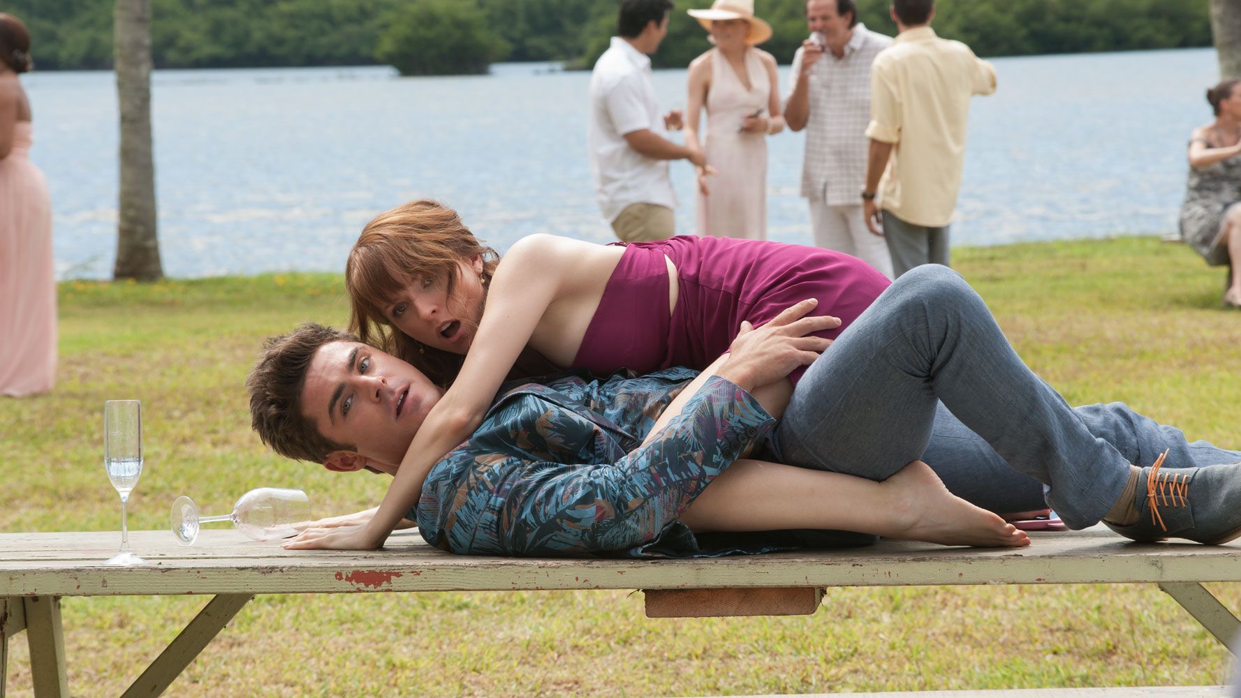 Randka na weselu opowiada historię dwóch braci, Mike’a i Dave’a Stangle’ów, granych przez Adama DeVine’a oraz Zaca Efrona, którzy znani są z wywoływania chaosu na rodzinnych imprezach. Aby zapobiec kolejnym katastrofom, ich rodzice postanawiają, że na zbliżające się wesele siostry bracia muszą przyprowadzić odpowiedzialne osoby towarzyszące. Mike i Dave zamieszczają ogłoszenie, które przyciąga uwagę dwóch przebiegłych dziewczyn, Alice oraz Tatiany, granych przez Annę Kendrick i Aubrey Plazę. Wbrew oczekiwaniom, towarzyszki okazują się być równie szalone jak oni sami.