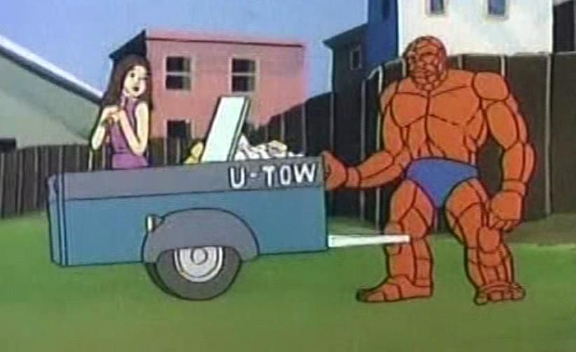 Choć produkcja ta nosi tytuł Fred and Barney Meet the Thing, niech on Was nie zmyli. Bohaterowie Flinstonów i Stwór pojawiali się razem wyłącznie podczas sekwencji otwierającej serial oraz podczas krótkich przerywników między poszczególnymi segmentami. Warto też dodać, że w serialu nie pojawili się inni członkowie Fantastycznej Czwórki a geneza Stwora różni się od tej znanej z komiksów.