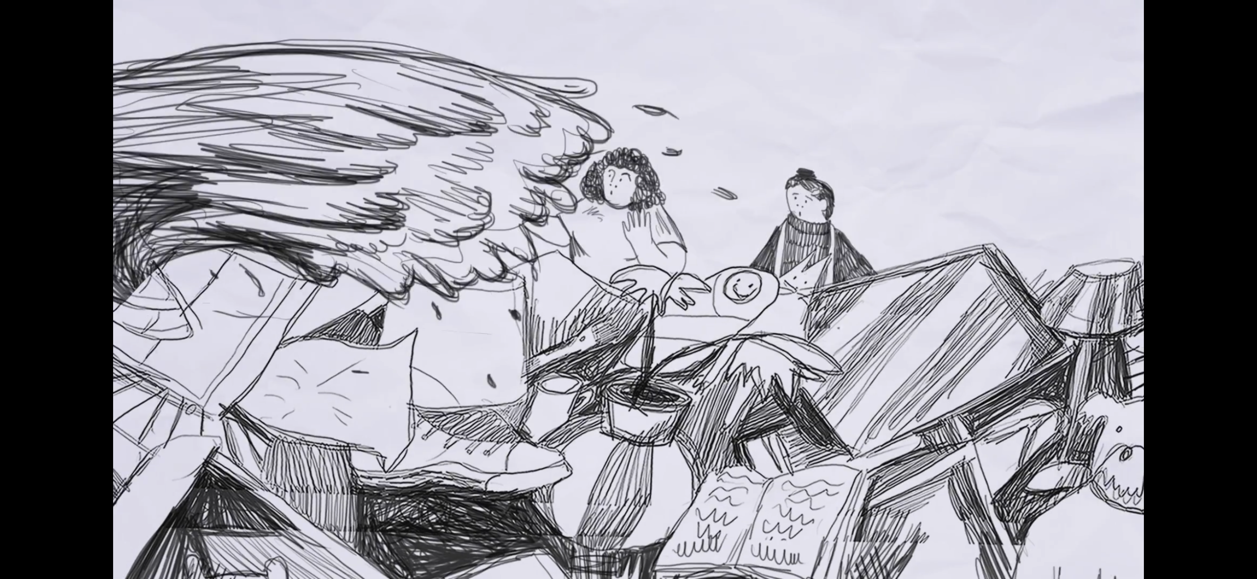 Agnieszka Popińska: W trakcie trzeciego roku studiów szukałam pomysłu na film zaliczeniowy. Wpadło mi do głowy, że ciekawym wyzwaniem może być zrealizowanie czegoś z dziećmi. Mam wrażenie, że naprawdę dobrze łączy się to z animacją. Rok wcześniej próbowałam już swoich sił z dokumentalną formą. Chciałam zobaczyć, czy uda mi się pójść krok dalej. Rozmawiałam o tym z moimi wykładowcami i zaproponowali, że może warto postawić na obserwację pewnego procesu. Akurat była okolica listopada/grudnia – idealny czas, żeby zarejestrować przedstawienia świąteczne. Tak narodził się pomysł, z chęci eksploracji dokumentu w animacji. I spróbowania swoich sił z pracą z małymi dziećmi, które mają nieco odklejone głowy.