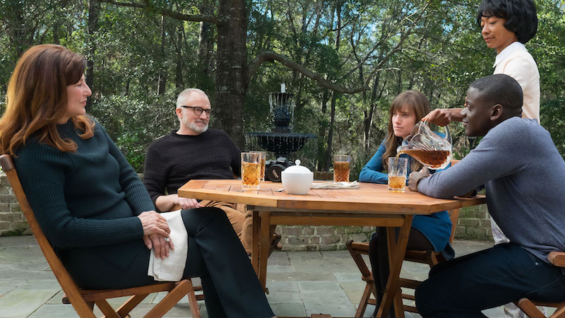 Bohaterem jest czarnoskóry Chris Washington (Daniel Kaluuya, kolejny Brytyjczyk „kradnący” role Amerykanom), fotograf o artystycznych aspiracjach, który ze swoją dziewczyną Rose Armitage (Allison Williams) wyjeżdża na weekendowy wypad do jej rodziców. Piękna, biała kobieta zarzeka się, że zarówno mama i tata są bardzo tolerancyjni i „pewnie głosowaliby na Obamę, gdyby mógł startować na trzecią kadencję”. I faktycznie – w domu niczym z bajki, na zielonych przedmieściach, mieszkają starsi państwo (Catherine Keener i Bradley Whitford), którzy są dla chłopaka swojej córki przemili. Oboje wykształceni, ale na luzie – on jest neurochirurgiem, ona – psychoterapeutką, potrafiącą wyleczyć każdego palacza z nałogu poprzez hipnozę. Jest sympatycznie, kawka, ciastko, śmiechy, pokazywanie rodzinnych zdjęć („mój ojciec był świetnym sportowcem, a lepszy od niego był tylko Jesse Owens”). Przypadkiem składa się, że w ten sam weekend w domu odbywa się spotkanie ze znajomymi i przyjaciółmi, oraz zjawia się też brat Rose – Jeremy. Wszystko pięknie, gdyby nie jeden szczegół, który nie daje Chrisowi spokoju. Dla państwa Armitage pracują dwie czarnoskóre osoby, których zachowanie przyprawia o ciarki na plecach.