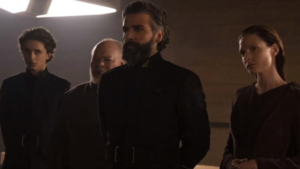 Film nie jest tak potwornie długi, jak mogłoby się wydawać, choć wpisuje się w trend coraz to potężniejszego metrażu współczesnych blockbusterów. Wszystko przez to, że Villeneuve, biorący się za bary z kolejnym wybitnym materiałem, od samego początku specjalnie się nie spieszy co sprawia, że seans pozostawia wrażenie nieco dłuższego. Większość filmu to zarys konfliktu, rozstawienie pionków na planszy oraz wprowadzenie nas w piękny i od początku wywołujący ciekawość świat. Są intrygi, przekazywanie władzy, różne lenno i poddani, czyli dokładnie tak, jak to miało miejsce w książce. Oczywiście materiał jest okrojony i bierze na warsztat to, co akurat interesuje reżysera, jednak zwolennicy powieściowego oryginału się w tym świecie odnajdą. Twórca Labityntu bardziej niż polityką zajmuje się jednak swoimi postaciami i od tego zaczyna budowę pustynnej mozaiki. Mozaiki, która z każdą upływającą minutą się rozkręca.