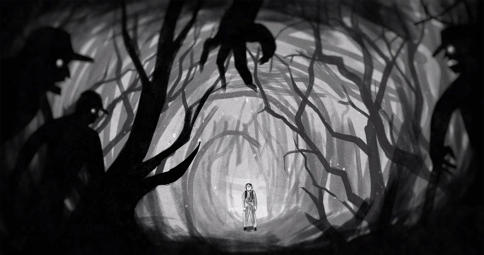 Ciekawym zabiegiem jest przeplatanie ujęć stricte dokumentalnych sekwencjami animowanymi. Twórców filmu zainspirowały rysunki głównej bohaterki opowieści, czyli Runy. Sztuka stała się dla niej terapią, ponieważ w ten sposób mogła dać ujście emocjom, które się w niej kłębiły. Nie umiała mówić po polsku ani po angielsku, nie miała wokół siebie nikogo, komu mogłaby się wygadać. Musiała pozostać silna dla braci i taty. W ten sposób powstawały rysunki. Na nich widzimy las, samą Runę, ścieżki, którymi przemierzali Puszczę Białowieską. Często też te przerywniki pozwalają nam poznać historie, których nie mogliśmy zobaczyć na własne oczy. Przykładem jest wizyta nastolatki z tatą w urzędzie. Z oczywistych względów kamera nie została wpuszczona do gabinetu, więc w zamian dostajemy animowaną, mocno przerysowaną opowieść, która oddaje emocje Runy.