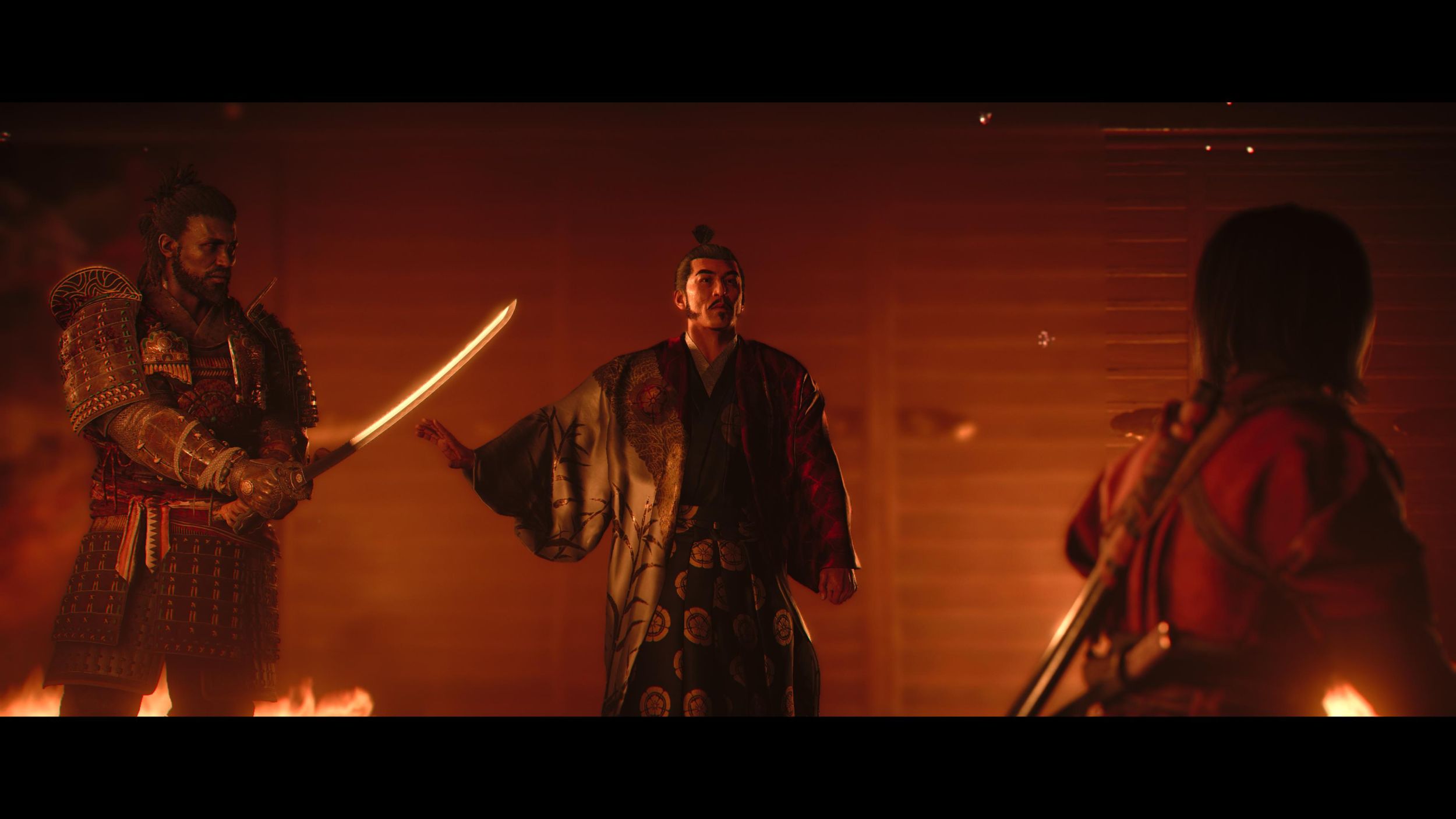 Następnie po tym naprawdę długim, ponad dziesięciogodzinnym wstępie, Naoe spotyka Yasuke, a w tle odgrywają się wydarzenia dobrze znane fanom okresu Sengoku. Od tego momentu przygodę kontynuujemy już z dwójką bohaterów. Yasuke tworzy interesujący kontrast dla Naoe – zarówno gameplayowo (o czym więcej za chwilę), ale też narracyjnie. Dziewczyna nie daje sobie w kaszę dmuchać (a może bardziej w ryż) i zrobi wszystko, by osiągnąć swój cel. Yasuke zaś, mimo swojej potężnej postury, okazuje się ciepłym chłopakiem o złotym sercu, który przede wszystkim trzyma się swoich wartości. Niestety Yasuke nie ma aż tak ciekawego wątku fabularnego. Poznamy oczywiście jego przeszłość, jak stał się samurajem, ale trudno tam o tak angażującą historię, jak u Naoe. Nie jestem też fanem, co się dzieje z tą dwójką dalej – niestety Ubisoftowi chyba zabrakło pomysłu jak zbudować tu realistyczną relację. Twórcy wręcz na siłę wpychają nam informację, że są najlepszymi przyjaciółmi, ale nie pokazują nam nic, co mogło do tego doprowadzić. Musimy im wierzyć na słowo.