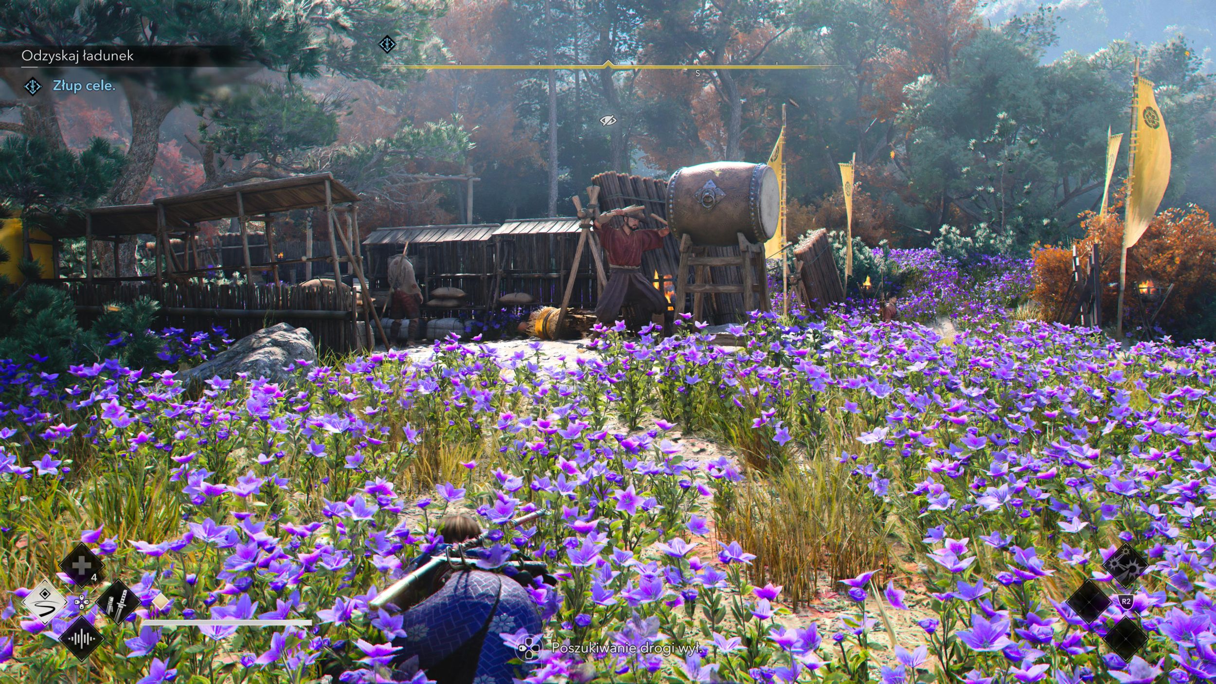 W Assassin’s Creed Shadows twórcy postanowili postawić przed nami prawdziwe wyzwanie, równocześnie dając nam sporo ciekawych rozwiązań, umożliwiających cichą eliminację. Przy domyślnych ustawieniach poziomu trudności już nie zabijemy od razu każdego wroga ukrytym ostrzem, zakradając się od tyłu. Niektórych uzbrojonych samurajów trzeba zaatakować z góry albo odblokować specjalne umiejętności, by tego dokonać. Wprowadzono też wrogów strzelających, którzy potrafią dostrzec nasz najmniejszy ruch na widoku, a także postaci neutralne, które nas nie atakują, ale robią masę hałasu i wzywają uzbrojonych kolegów. Nadal jednak trzeba trochę pomarudzić na sztuczną inteligencję – bo przeciwnicy często szybko ignorują ciało albo na przykład podchodzą gęsiego do krzaków, gdy zagwizdany, a odczekanie chwili na dachu „resetuje” alarm, po czym możemy dalej eliminować jak gdyby nigdy nic. Czyli tutaj po staremu, można rzec.