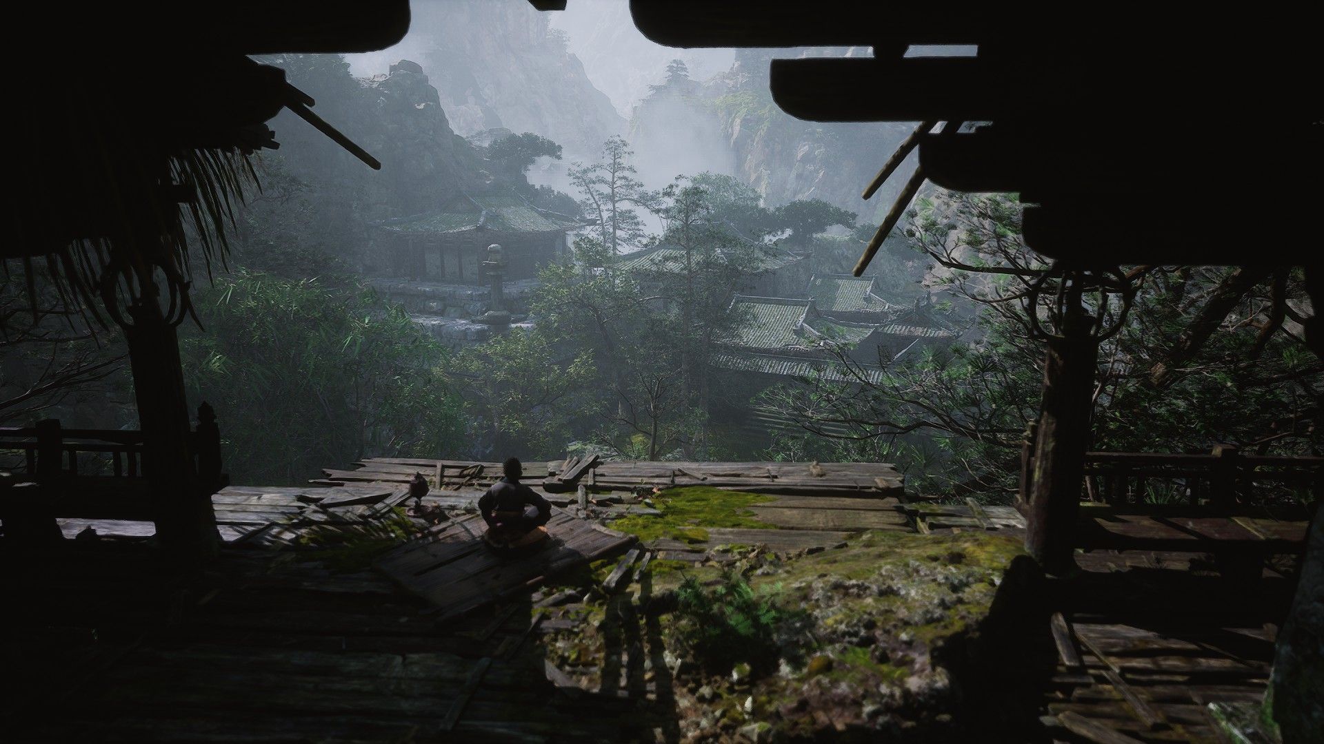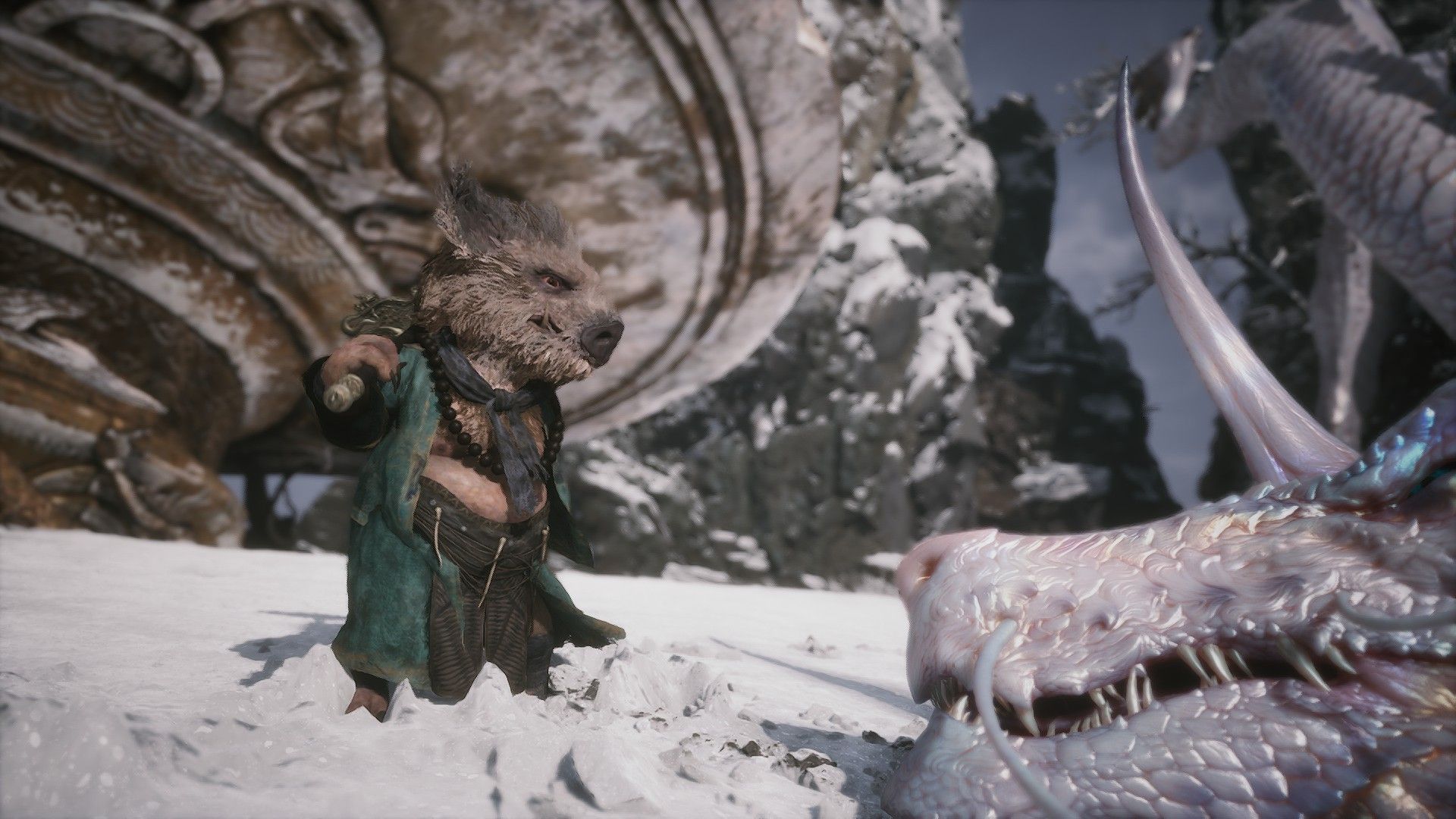 Black Myth: Wukong jest egzotyką nawet wśród wspomnianych pozycji ze wschodnim rodowodem. Bazuje na klasyce chińskiej literatury – Wędrówce na Zachód Wu Cheng’ena. To opowieść o Sun Wukongu, królu małp, który wraz z grupą osobliwych towarzyszy (np. wieprzek Zhu Bajie i koń Tripitaka, obecni zresztą w samej grze) wyrusza w podróż w poszukiwaniu świętych ksiąg Buddy, co rusz natykając się na różne przygody. Trochę opowiastek filozoficznych, trochę humorystycznych, a nade wszystko niepowtarzalne dzieło, którego nawet jeśli nie czytaliście, to najpewniej trafiliście na jakieś odniesienia do niego (choćby i nieświadomie). Game Science czerpie garściami z klasyka pod kątem nastroju i pewnych elementów historii, przerabiając to oczywiście na gatunkową modłę. Fenomenalne preludium gry, będące dosłownie starciem w niebiosach, wspaniale wprowadza nas w odpowiedni nastrój. W trakcie rozgrywki co rusz trafiamy na materiały z opisami, dość często również pojawiają się cutscenki wprowadzające jakiś kontekst, jednak koniec końców narracja jest szczątkowa i tutaj bardziej przypominają gry FromSoftware. Całości towarzyszą nastrojowe motywy, pozwalające lepiej zanurzyć się w historii.