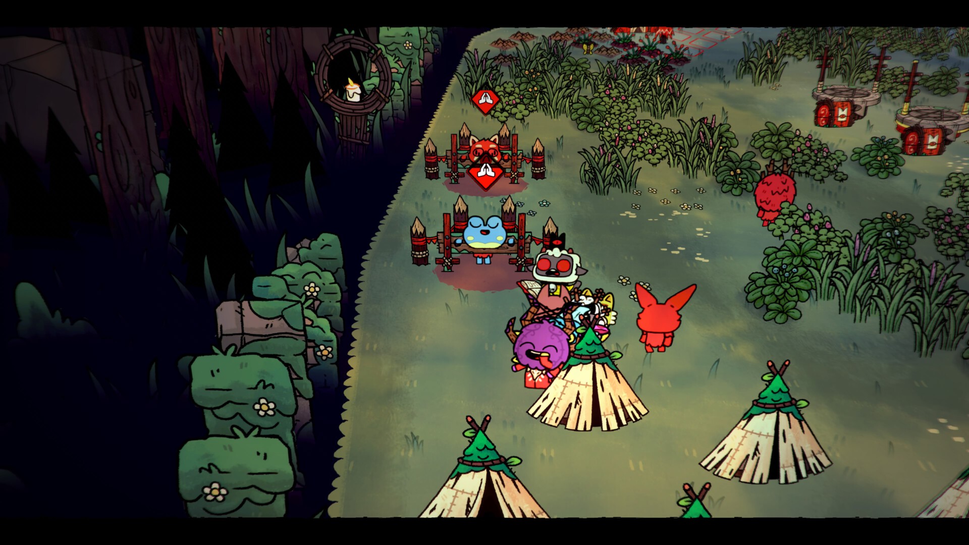 Cult of the Lamb poza masą mechanik i wciągającą eksploracją losowo generowanych lochów, to także gra urzekająca oprawą graficzną. Tytuł jest niezwykle kolorowy, co tym bardziej przyjemnie gryzie się z obrazem sekty, gdzie składanie ofiar jest na porządku dziennym. Ciężko jest tu oderwać oczy od radosnych i przyjaznych wyznawców, którzy wesoło wykonują swoje obowiązki. Super też prezentuje się nasz baranek. Całościowo obraz mocno przypomina Don’t Starve, więc fani tamtej produkcji będą wniebowzięci. Trzeba też pochwalić animację. Ta choć zdaje się dość oszczędna, na przykład podczas walki, to skrywa wiele ładnie przygotowanych sekwencji. Ja miałem naprawdę sporo frajdy podczas odkrywania kolejnych animacji ataków specjalnych. A muzyczka również nie zostaje w tyle, bo nieraz potrafi pokazać pazur, przygrywając nam niepokojącymi brzmieniami podczas starć.