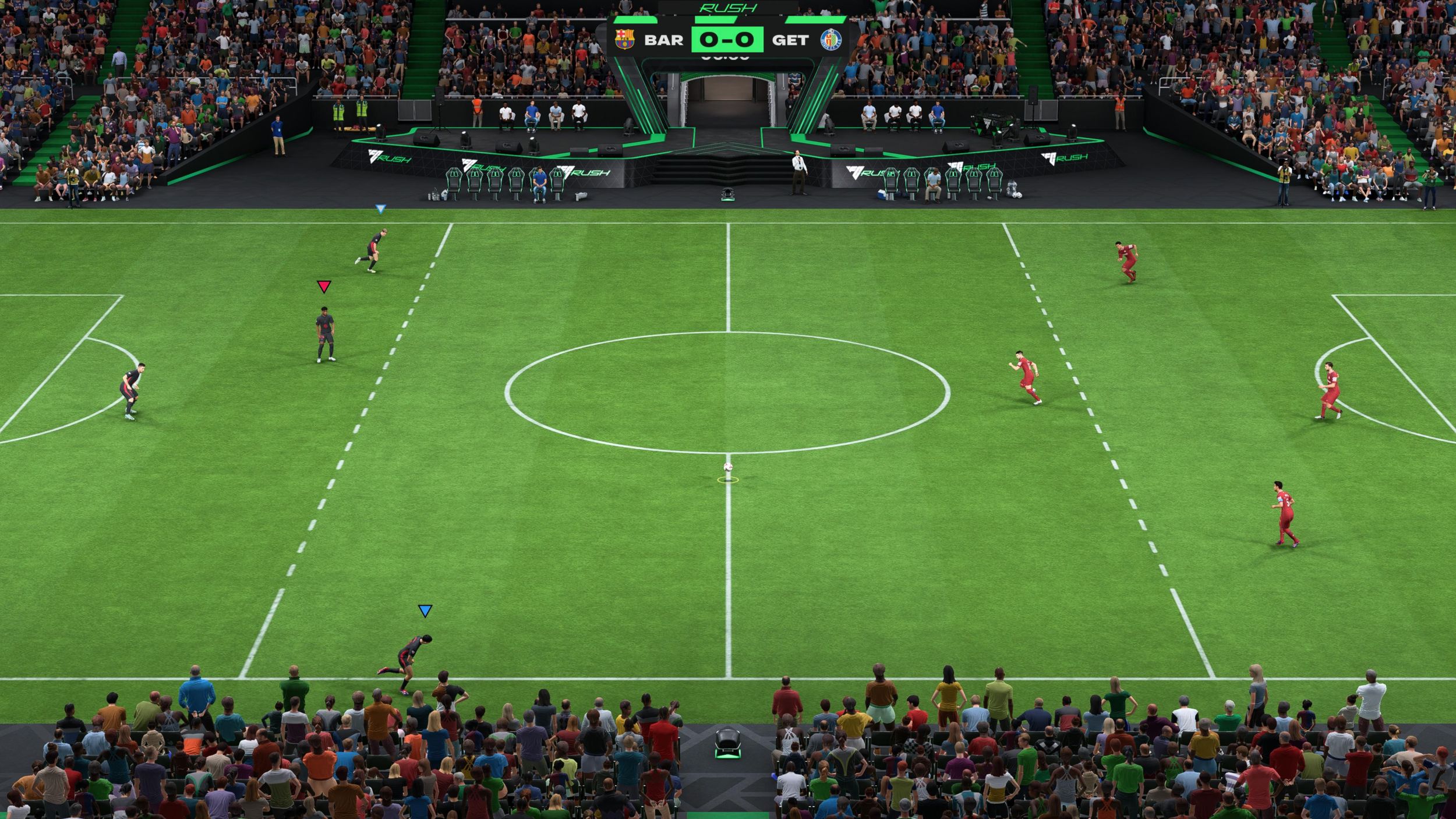 Kolejna nowość to zupełnie nowy tryb rozgrywki jakim jest Rush. Nowy, choć nie do końca, bo jest ewolucją wprowadzonego 5 lat temu trybu Volta trybu, gdzie graliśmy na małych boiskach halowych/ulicznych, a liczyło się tam głownie spamienie trikami i nic więcej. Tym razem EA postanowiło podejść do tego trochę inaczej. Od edycji 25 dostajemy małe boiska (jednak większe niż w Volcie), ale zasady i gameplay zbliżone do tego, czego możemy doświadczyć w pełnowymiarowym trybie. Gramy 5 na 5, są jednak są spalone, bramki normalnych rozmiarów, stały bramkarz oraz rożne, wyrzuty z autu i tak dalej. Fajną nowością są niebieskie kartki, czyli minutowe kary zamiast całkowitego wydalenia z boiska za czerwoną kartkę. Karne zostały za to zastąpione przez sam na sam z bramkarzem.