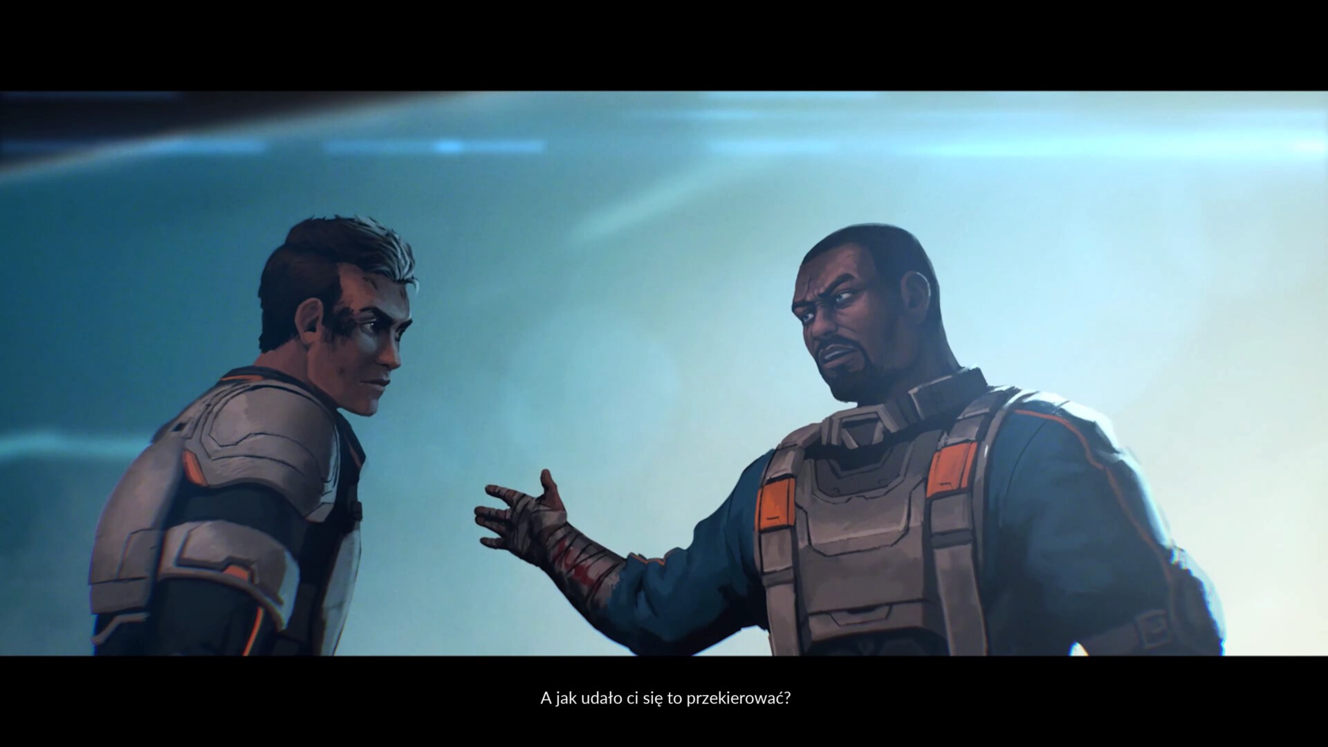 Głównego bohatera na początku fabuły poznajemy jako pracownika korporacji G&B, która zajmuje się kosmicznym górnictwem. Niestety Adam szybko wpada w tarapaty i musi ratować się ucieczką. Staje się banitą. Zadania na początku gry skupiają się na pomocy i wyleczeniu naszego towarzysza Bena, który trochę ucierpiał. Cała historia zaskakuje rozmachem i długością – sam główny wątek zajmie Wam ponad 30 godzin. Przez ten czas możecie spodziewać się paru mocnych momentów. Osobiście nie spodziewałem się w tym tytule aż tak dużego nacisku postanowionego na opowieść – bardzo mnie ucieszyło, że studio nie potraktowało historii po macoszemu. Fantastycznie sprawdza się tu też przedstawianie opowieści w formie rysowanych przerywników filmowych. Może nie mają super płynnej animacji – a wręcz praktycznie jej nie mają – ale z nawiązką nadrabiają stylem graficznym. Przerywników nie widzimy przy każdej rozmowie bohaterów, a głównie gdy postacie opuszczają kokpity. Dużo jednak też nasłuchamy się dialogów podczas samych lotów naszym kosmicznym pojazdem.