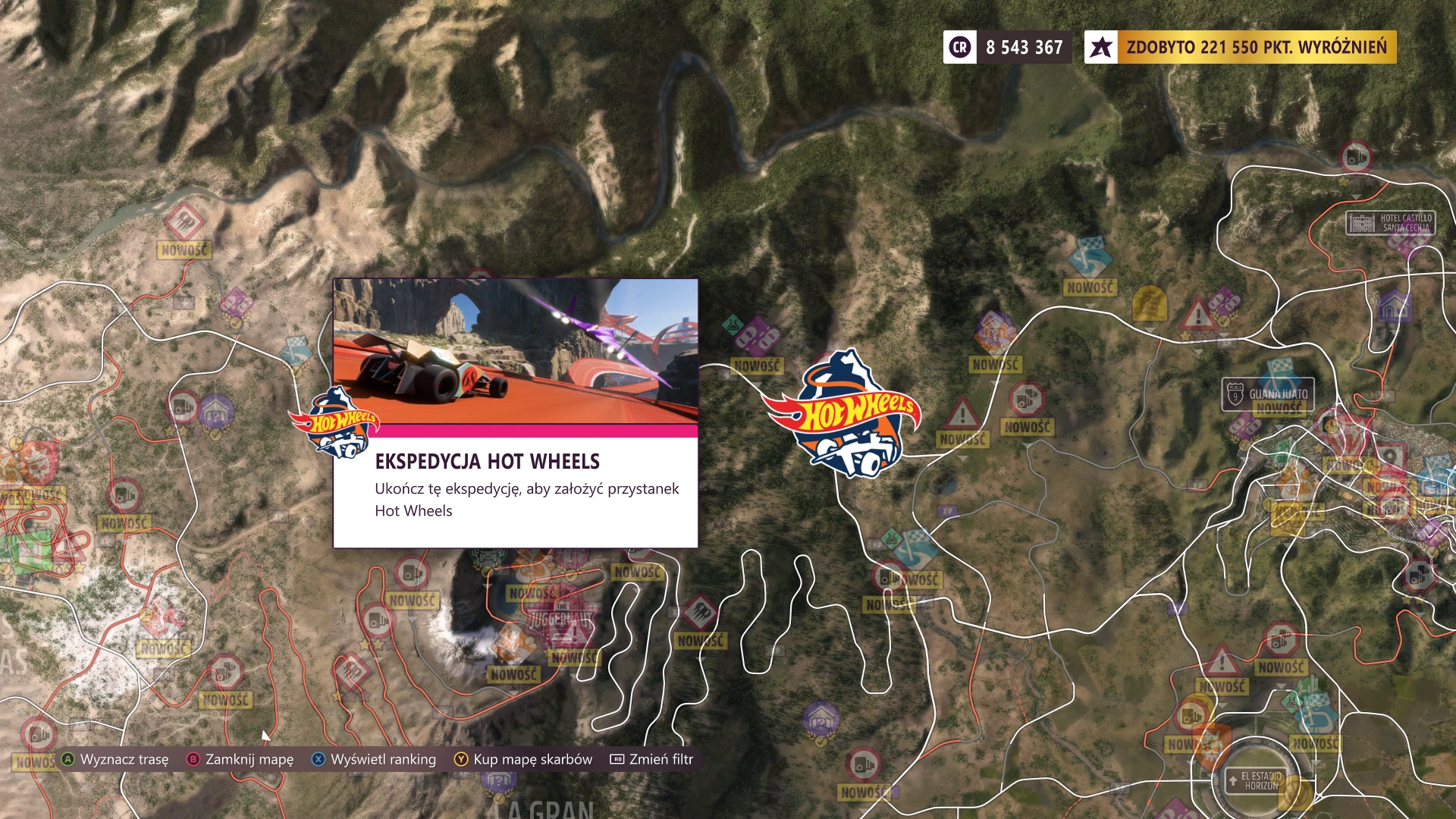 Mapa dostępna w Forza Horizon 5: Hot Wheels jest bardzo rozbudowana, co potwierdza zdjęcie opublikowane przez twórców. Nowe DLC wzbogaciło rozgrywkę o 4 różnorodne biomy, które są stworzone między meksykańskimi chmurami na wzór parku tematycznego, w którym będzie na Was czekał nawet ogromny, zielony smok! Będziemy mogli przemierzyć tutaj piaszczyste tereny, tropikalne lasy oraz ośnieżone szczyty czy okolice aktywnego wulkanu. Dostępne w grze krainy nazwano Nexus, Kanion Olbrzyma, Lodowy Kocioł i Leśne Wodospady.