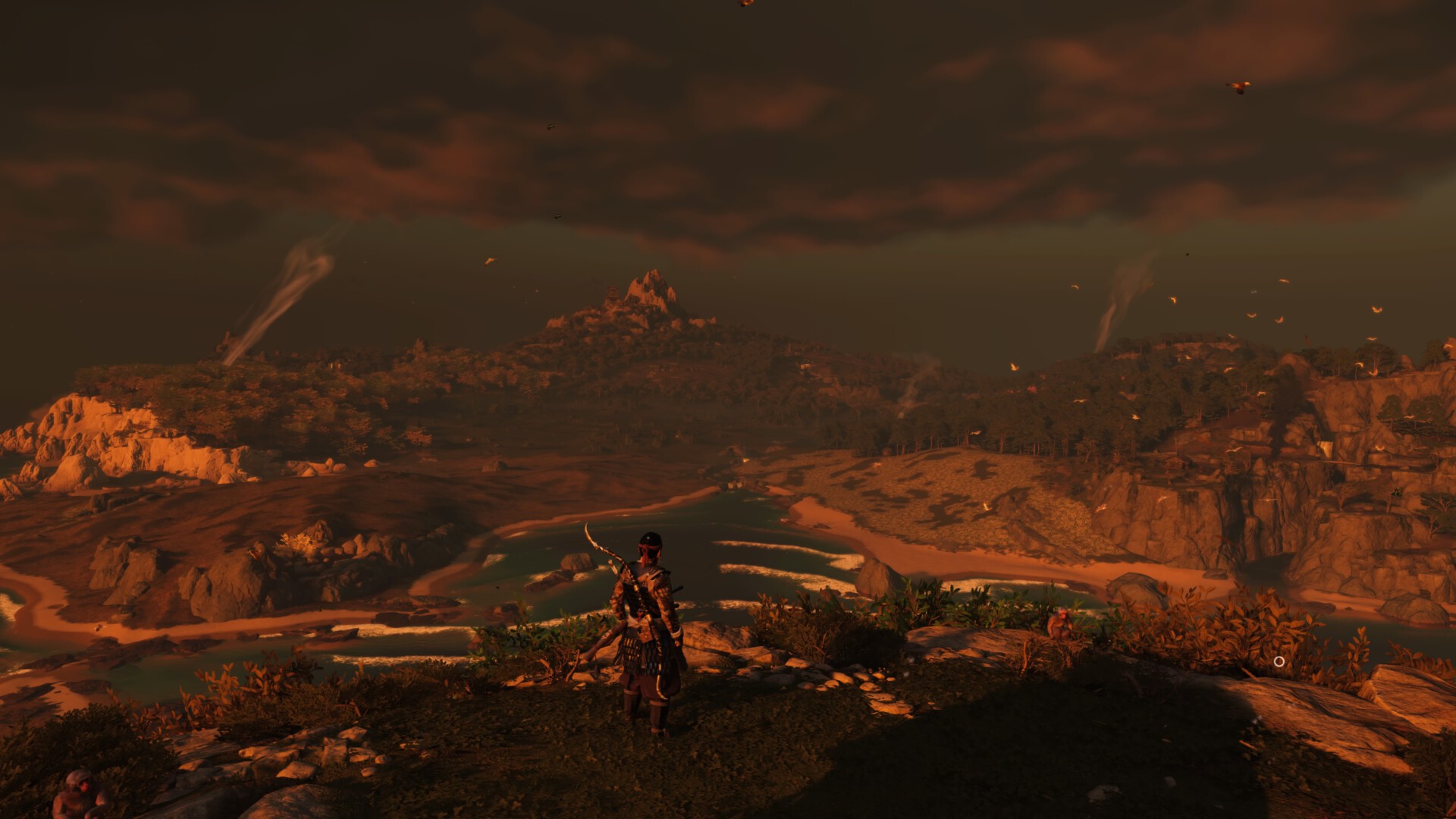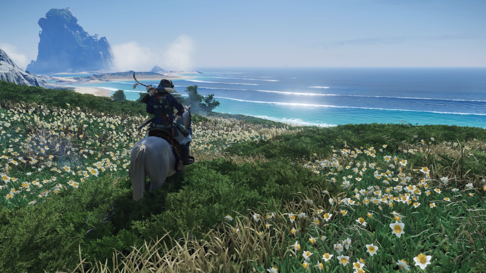 Jeśli zaś chodzi o sam gameplay, to do zabawy dostajemy nową „piaskownicę” w postaci wyspy Iki. Lokacja nie jest duża, bo jest wielkości może 2/3 Izuhary, czyli pierwszej części wyspy Czuszimy, którą przemierzamy na początku przygody z podstawki. Mimo wszystko znajdziemy tam sporo aktywności, które starczą nawet na kilkanaście godzin gry. Sam główny wątek to 5-6 godzin rozgrywki (przyznam, że mógłby być odrobinę dłuższy). Do tego dochodzą opcjonalne misje poboczne – te bywają bardziej rozbudowane niż te z głównej nitki fabularnej. Spotkamy tu nawet pewne znajome twarze. Zdecydowanie polecam sprawdzić. Poza tym mamy standardowe aktywności, jak ścinanie bambusów, kąpiele w onsenach, układanie haiku czy też mityczne opowieści, gdzie możemy zdobyć nowe zbroje (także dla naszego konia, bo ten teraz robi za taran i potrafi rozjeżdżać wrogów). Z nowości można wspomnieć o wyzwaniach strzeleckich, gdzie musimy zestrzelić lampiony w jak najkrótszym czasie albo o sanktuariach zwierząt, gdzie zagramy na flecie i pogłaszczemy jelonki czy koty. Ciekawą nowością są też kapliczki, które wymagają od nas rozszyfrowania wierszowej łamigłówki. Ogólnie jest co robić.