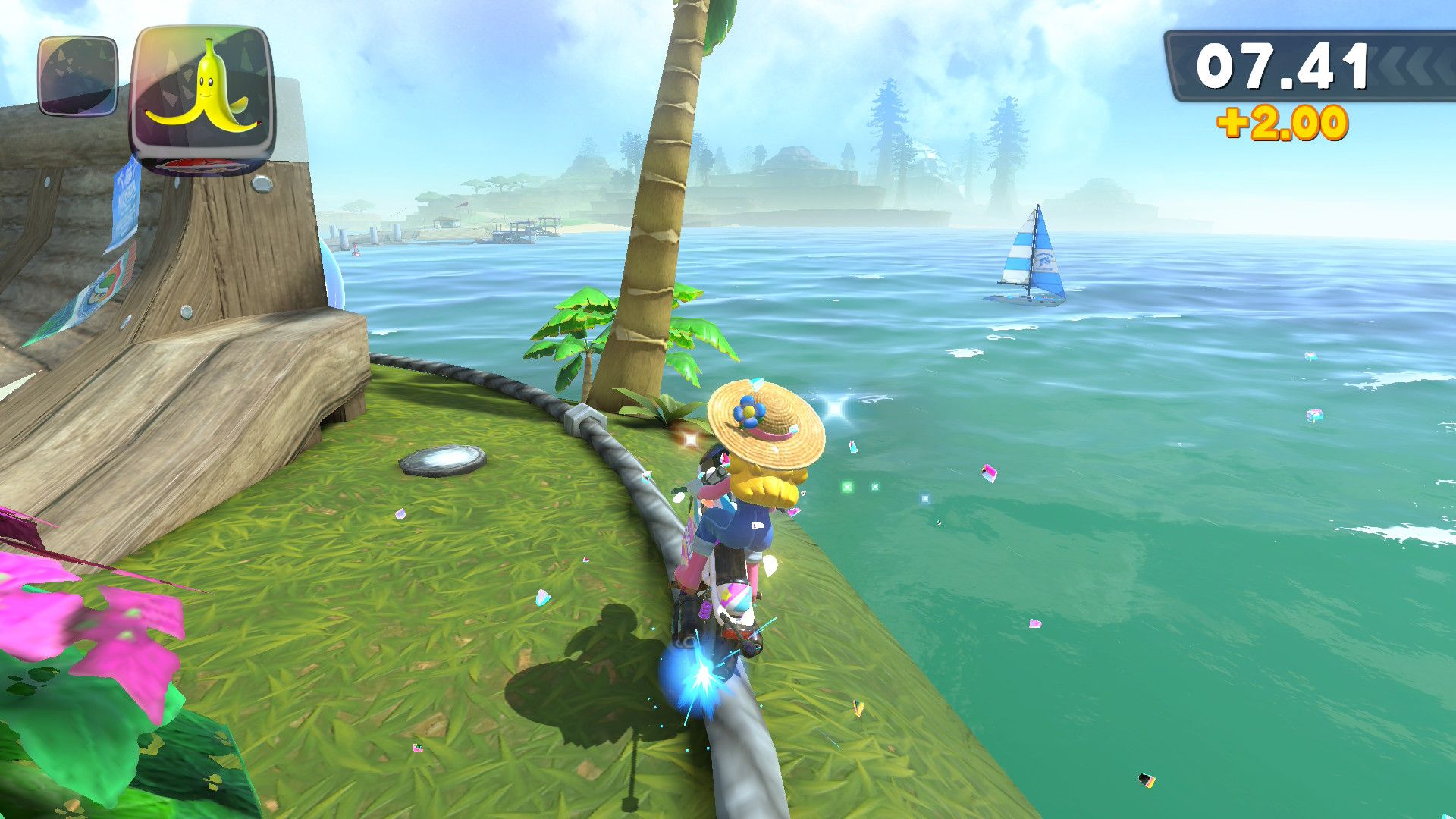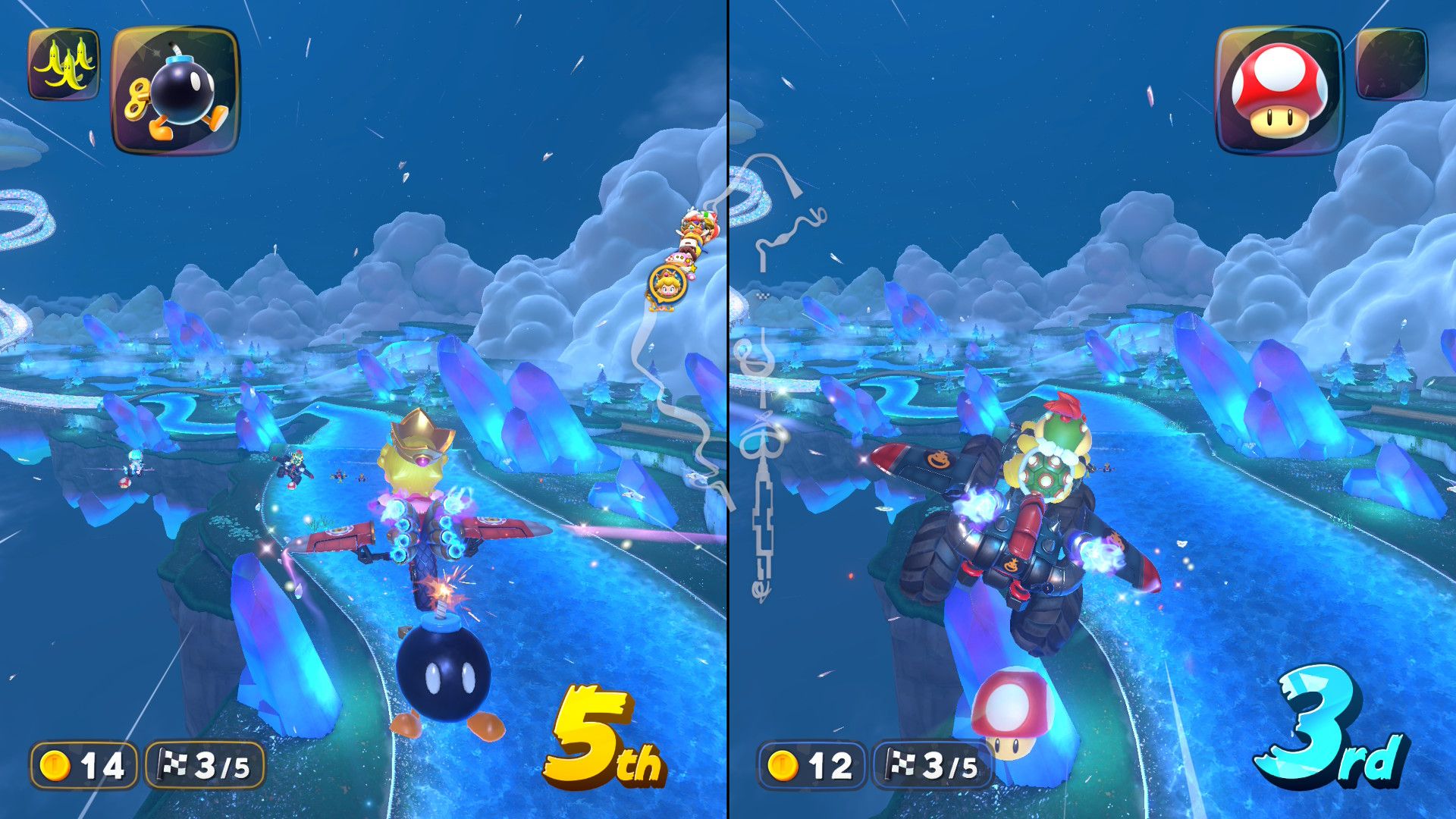 Nie można nie wspomnieć o innym czynniku, który przełożył się na odbiór wyścigów. Twórcy bowiem postanowili zwiększyć liczbę graczy biorących udział w zmaganiach – teraz jest to aż 24 postacie na jednym torze. Czy to dobrze? Dla mnie jak najbardziej. Podczas rozgrywki dzieje się tu jeszcze więcej niż w poprzedniej odsłonie. Nierzadko będziecie świadkami istnego chaosu, który nie ułatwia wygrania wyścigu. Niezależnie, czy gracie z innymi graczami online, czy singlowo ścigacie się z botami, możecie liczyć, że będziecie atakowani na każdym kroku. Gra dość często i licznie obdarza nas gadżetami do rzucania, więc można spamować ile wlezie. Fajnie, że tym razem trzymane przez nas przedmioty mogą nas automatycznie bronić, nie trzeba już uporczywie dusić przycisku od rzutu.
