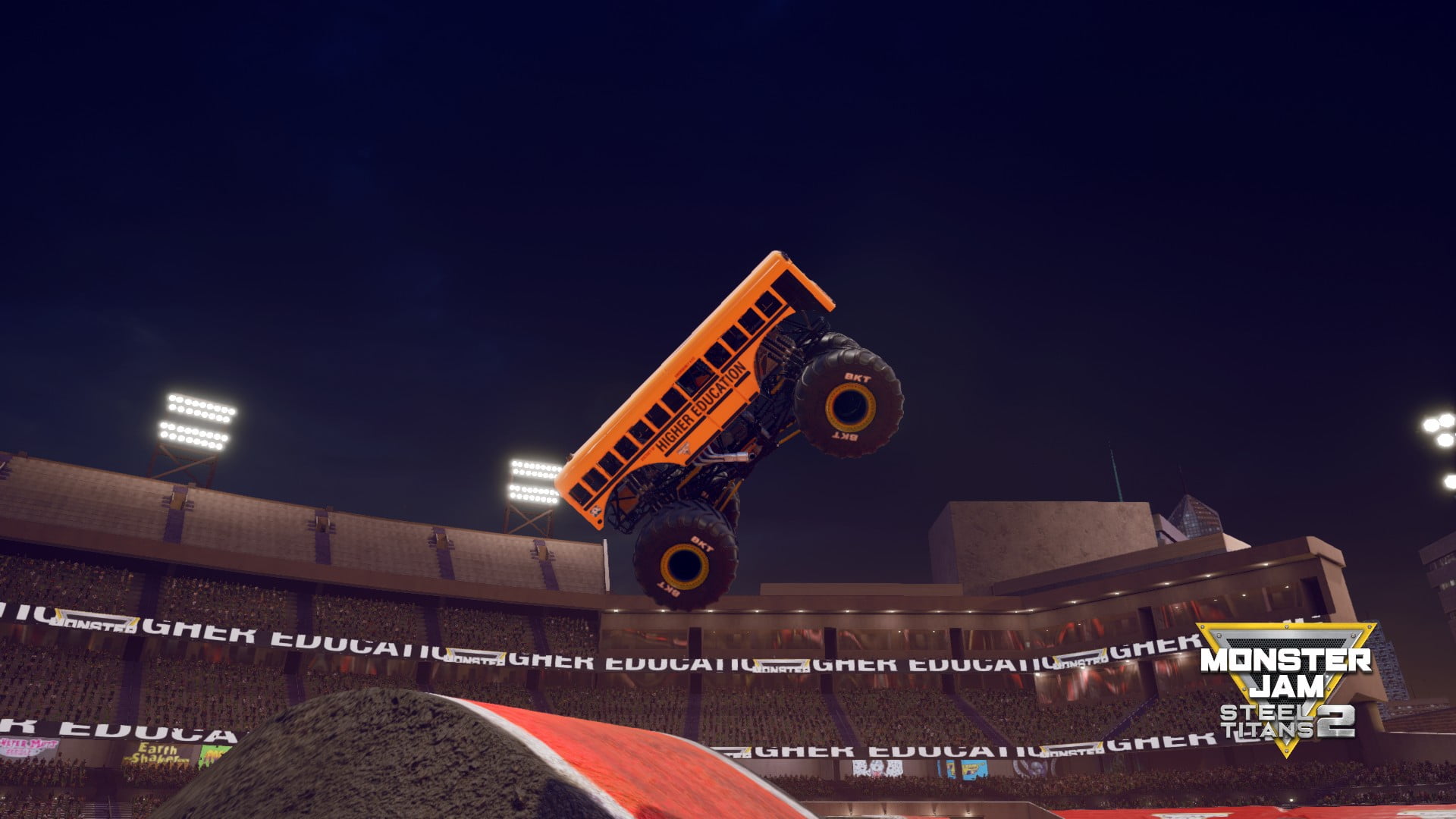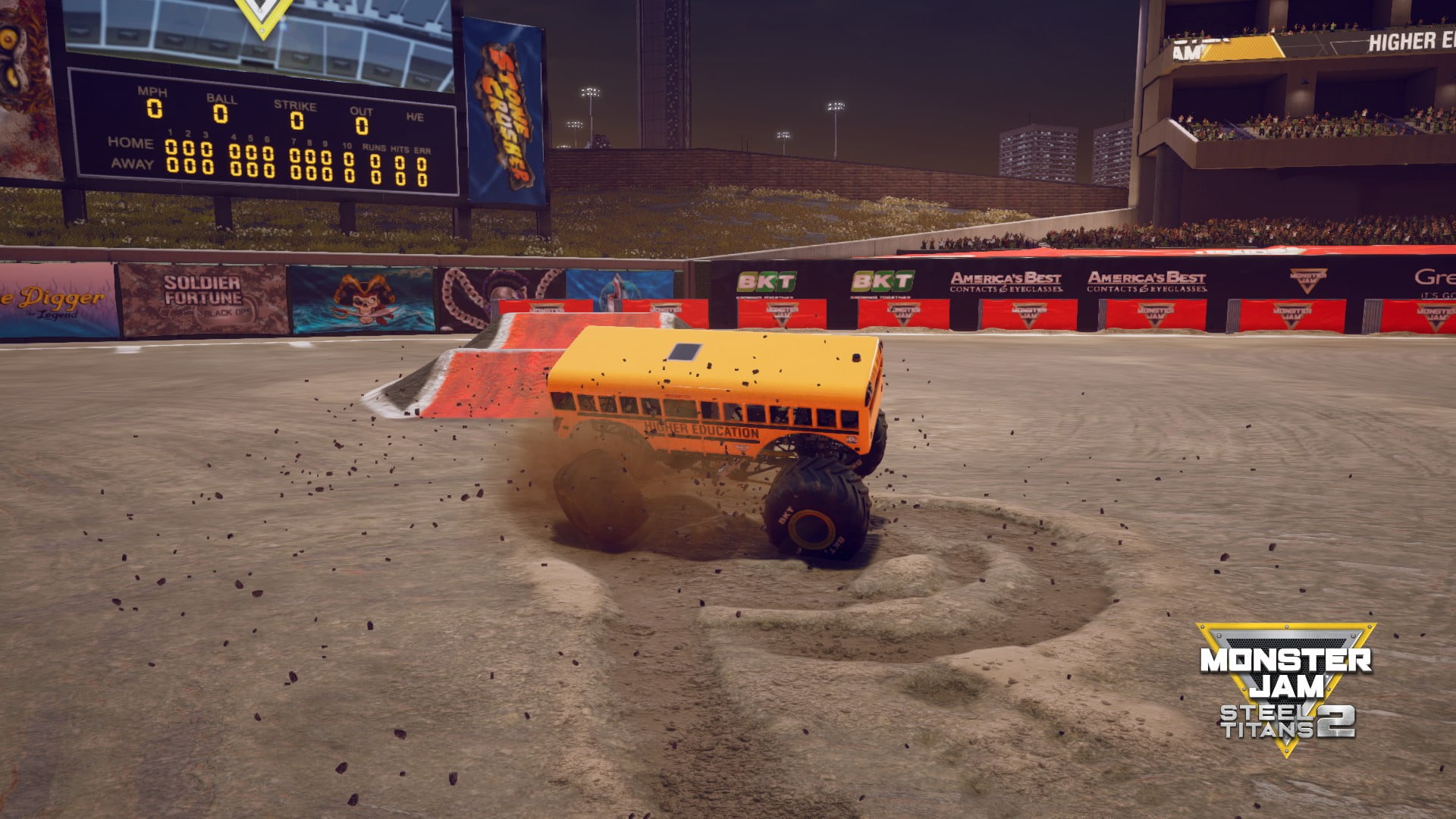 Monster Jam to wydarzenia, najbardziej popularne w USA, podczas których mierzą się ze sobą monster trucki różnych ekip. I te właśnie mistrzostwa są podstawowym założeniem gry. Możemy to zdefiniować po samej nazwie, a także logo gry, które zawiera symbol sportowej konkurencji. Do produkcji podszedłem jako całkowity laik w tym sporcie, co być może w jakiś sposób definiuje moją ocenę. W każdym razie – gracz ma możliwość przejścia kariery w świecie Monster Jam i na każdym kroku zdobycia nowych pojazdów (38 dostępnych). Wśród nich znajduje się wiele samochodów charakterystycznych dla tych mistrzostw, jak chociażby Grave Digger czy Higher Education. Wśród kilkunastu map dostępnych jest wiele prawdziwych stadionów, jak chociażby ten w San Diego. I muszę tutaj zaznaczyć, że cecha autentyczności tej produkcji to wyjątkowy plus. Tryb kariery nie wciąga jednak w żaden sposób. Gracz nie ma wielkiej potrzeby pięcia się po jej szczeblach. Myślę, że gra ta jest niewątpliwym puszczeniem oczka do fanów Monster Jam. Nie jestem jednak w tej grupie.