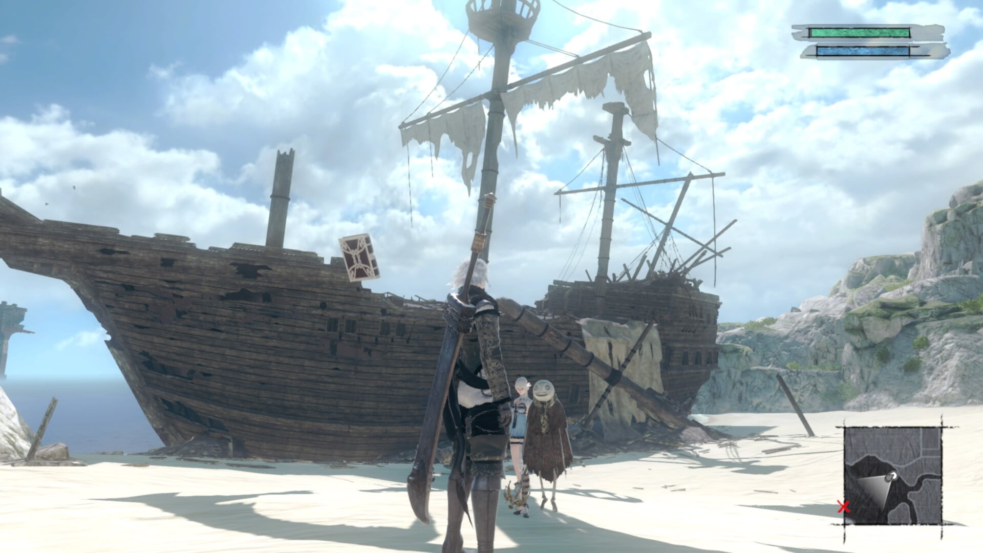Nieco mniej może przypaść do gustu sama droga do bossa. Wiąże się przeważnie z wyczyszczeniem całej lokacji z chmary powtarzalnych wrogów, a dopiero na końcu czeka na nas wspomniane, ciekawe starcie. Schemat ten powtarza się wielokrotnie, co może szybko znużyć. Co gorsze, dostajemy recykling nawet samych lokacji, bo niektóre miejsca musimy odwiedzić ponownie, czyszcząc je z tym samych, choć silniejszych przeciwników. Odwiedzane lokacje mimo wszystko są naprawdę ciekawe – możemy tu podziwiać między innymi pozostałości po upadłej cywilizacji – szkoda jednak, że mamy ich zbyt mało na grę na około 25 godzin. Ponarzekać można sporo także na zupełnie nieciekawe misje poboczne, często sprowadzające się do „przynieś, podaj, pozamiataj” – dlatego szybko sobie je zwyczajnie odpuściłem. Nie nudzi natomiast muzyka zaprezentowana w grze. Ta jest po prostu genialna i da się jej słuchać bez końca. Kawał dobre roboty odwalił tu kompozytor Keiichi Okabe, wspomagany przez przepiękny wokal Emi Evans. Co ciekawe, po ukończeniu gry pierwszy raz, możemy przełączyć muzykę na tą w Automaty – cudne!