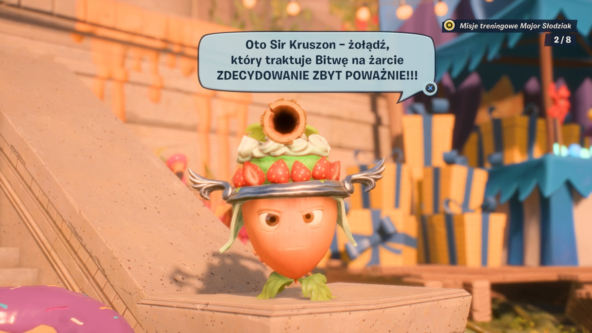 Do planu odparcia zombiaków wprowadza nas niejaka Major Słodziak – imię idealne, bo trudno nazwać inaczej wesołego słonecznika. To właśnie ona zleca nam misje, które mają przysłużyć się do ostatecznego pokonania zombiaków. Tutaj jest dość standardowo, bo w praktycznie każdym przypadku musimy pokonać część przeciwników, później odeprzeć ich kolejne hordy, aż ostatecznie rozprawić się z bossem. Najwięcej frajdy dają pojedynki z bossami, który potrafią być sporym wyzwaniem i jeśli odpowiednio się nie przyłożymy, mogą sprawić pewne trudności – choć oczywiście bez jakiś skrajności. Trudno jednak nazwać te pojedyncze misje pełnoprawną kampanią singlową, bo fabuły to tu jednak nie ma. Niestety.