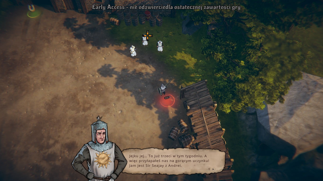 To czego nie załatwi grafika 3D, załatwią artworki podczas dialogów, które są przyjemnie przaśną odmianą. Tu jednak pojawia się jeden z grzechów głównych twórców tytułu – wprawdzie załatwili aktorów do intra live-action, ale nie załatwili aktorów do podłożenia głosów w dialogach. W efekcie tego Guy i NPC bełkoczą (dosłownie) zamiast artykułować znaczące zgłoski. Wiem, że w średniowieczu języki brzmiały nieco inaczej niż obecnie, ale bez przesady…