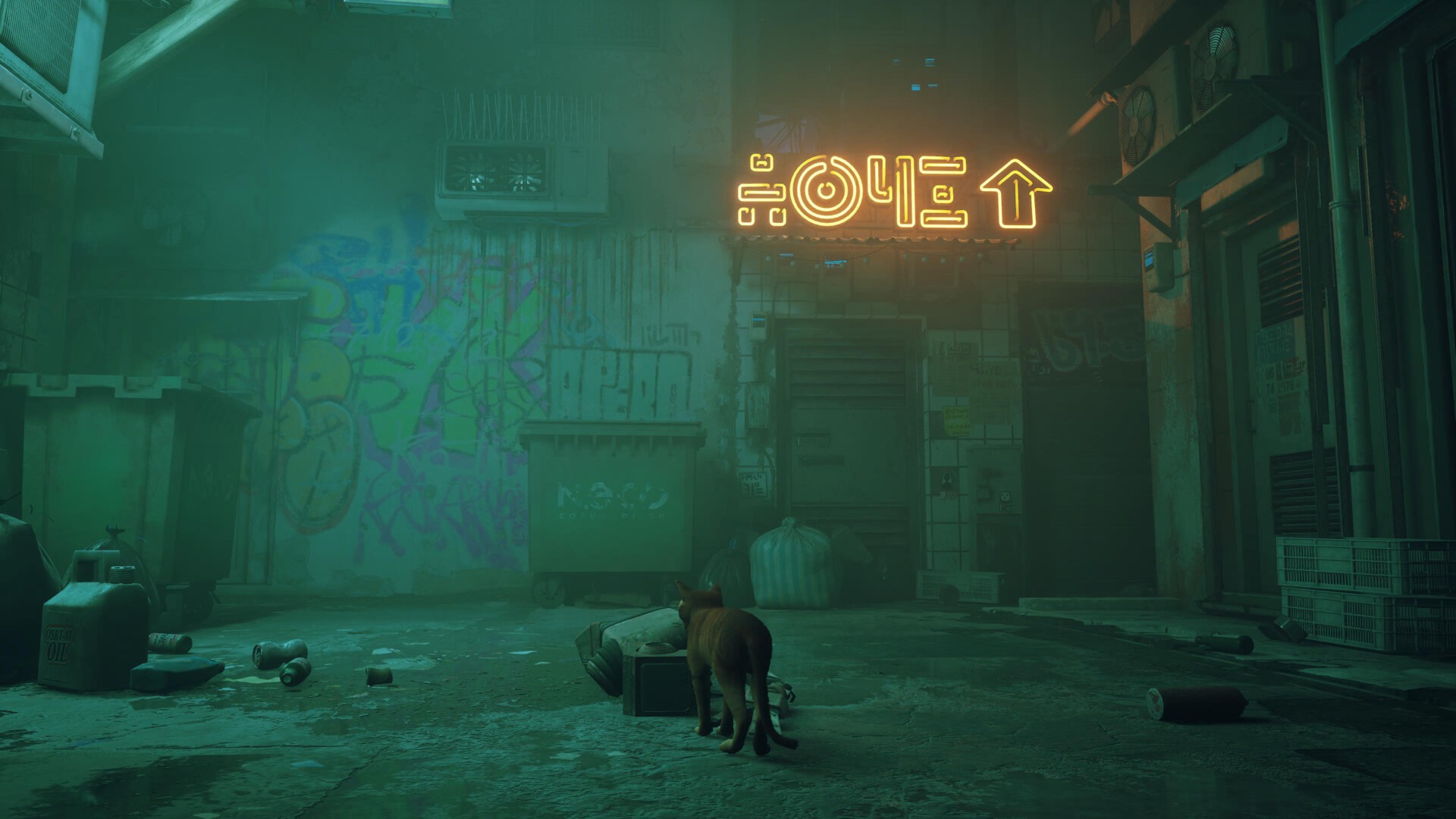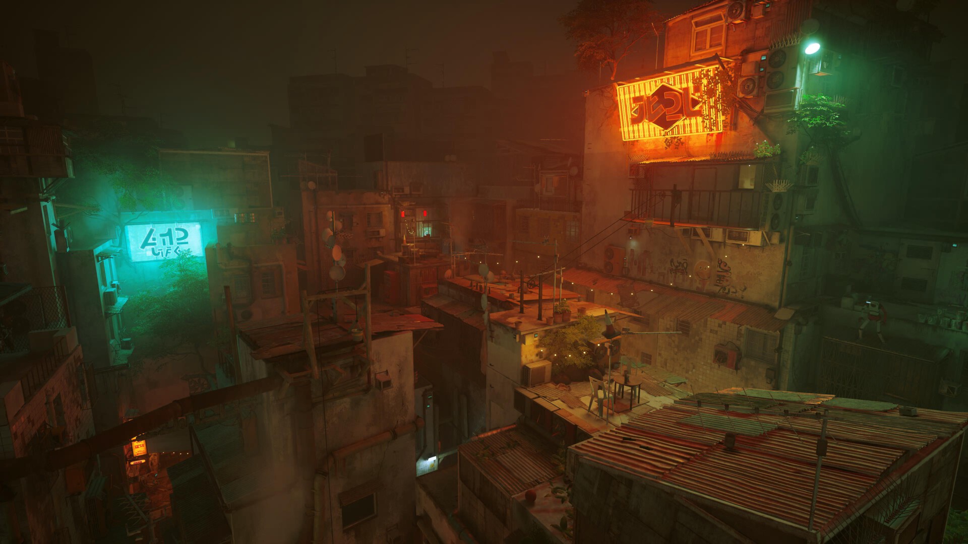 Jak zwykle w przypadku takich dystopii bywa, u władzy stała jedna korporacja (w grze mamy firmę Neco Corp), która doprowadziła świat do ruiny. Istnieje jednak legenda o tzw. Zewnątrz, którą starali się zrozumieć Nieznajomi. Nie będziemy Wam jednak za dużo spoilerować, bo fabuła tego tytułu to jego mocna strona i musicie poznać ją na własną rękę, bo warto! Celem naszego bohatera jest wydostanie się z tej betonowej pułapki. Z pomocą kolejnych robotów oraz drona B-12 kot przedostaje się w kolejne strefy miasta. A to jest ogromne i wielopoziomowe. Warto zaznaczyć w tym miejscu, że twórcy przy produkcji inspirowali się nieistniejącym już osiedlem z Hongkongu zwanym Kowloon Walled City.
