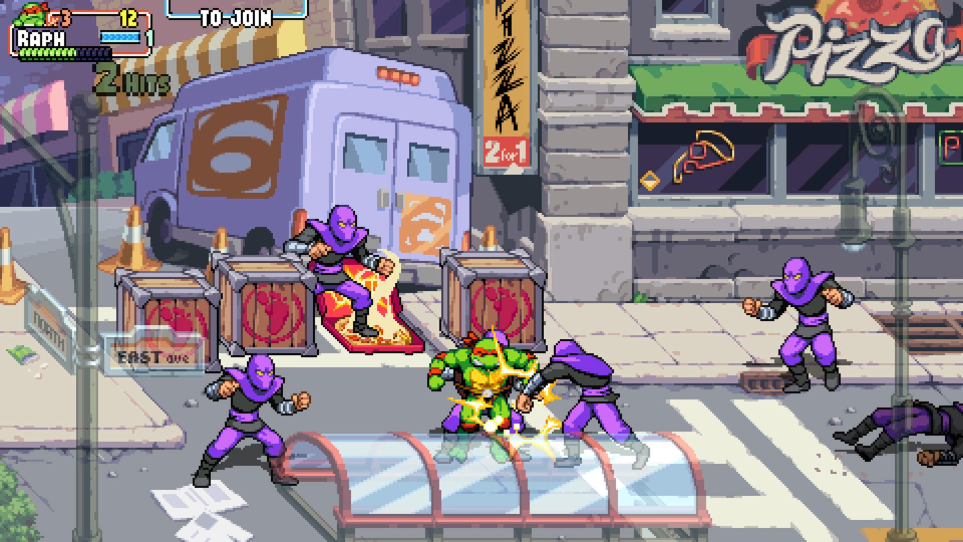 Bardzo spodobało mi się podejście twórców do tego projektu. Zadbali oni o każdy, najmniejszy szczegóły. Tutaj, nawet gdy wpadniemy do kanałów to na ekranie pojawi się charakterystyczny komiksowy dymek z komentarzem. Bohaterowie produkcji wyróżniają się nie tylko designem, ale i stylem walki. Oprócz wyróżniających ataków specjalnych zobaczyć możemy również ciekawe pozy czy usłyszeć znane powiedzonka. Każdą postacią gra się zupełnie inaczej. Przez to gameplay jest różnorodny. Pozyskanie power-upu następuje po… zjedzeniu pizzy. Podobnie sprawa ma się z leczeniem bohaterów. W trybie wieloosobowym możemy również uleczyć naszych kompanów poprzez… przybicie piątki!