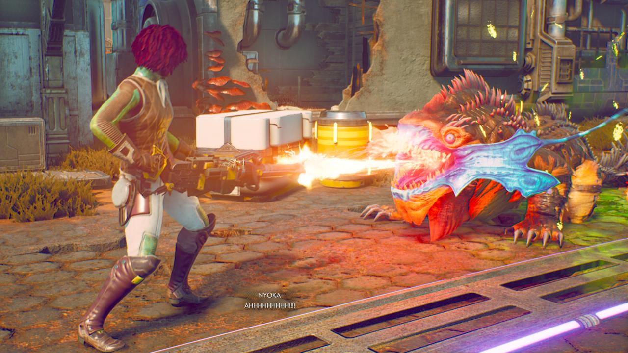 Na dzień dobry wita nas stylistyka będąca skrzyżowaniem Fallouta z domieszką Bioshocka (retrofuturyzm w pełnej krasie). Co rusz będziemy trafiać na tony czarnego humoru, który rozładowuje nawet najbardziej dramatyczne sytuacje – np. śmierć robotnika to okazja do wyśmiania korporacyjnego rygoryzmu. Trochę jak w serii Borderlands, tylko nieco mniej przaśnie, z subtelniejszym podejściem. Budowanie relacji z załogą na własnym statku kosmicznym może również przywodzić na myśl Mass Effect. Ale im głębiej wejdziemy w ten świat, tym mocniej poczujemy rękę twórców z Obsidian. W czasach sandboxowej inwazji – gdy elementy RPG są spotykane niemal wszędzie i zarazem, jak na ironię, aspekty związane z pogłębianiem settingu czy postaci to mrzonka – ich produkcje wyróżniają się niczym dźwięk miotacza na bezludnej planecie. Poza wspominanym już w tekście New Vegas, pracowici deweloperzy stworzyli chociażby dwie rewelacyjne części Pillars of Eternity. I tak samo jak w tamtych grach mogliśmy liczyć na niebanalne questy czy oryginalnych bohaterów, tego doświadczymy i w The Outer Worlds.