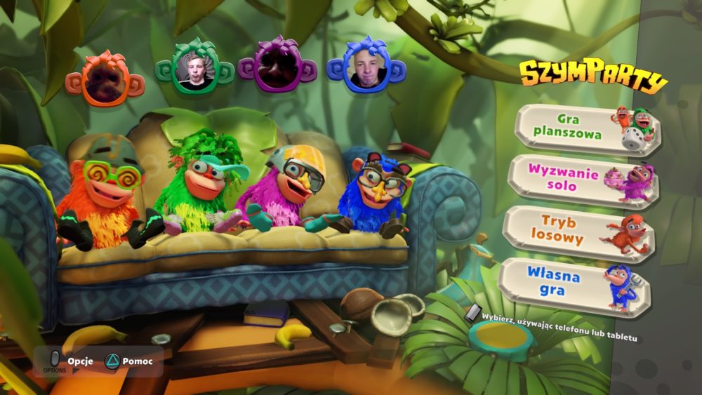 R: O tak! Losowe drużyny są świetne. Nie tak łatwo złapać równy rytm w dynamicznej rozgrywce, tym bardziej, że z partnerem będziesz współpracować jedynie kilkanaście sekund, a następnym razem może być to ktoś zupełnie inny. Warto również wspomnieć o systemie nagród, które oferuje graczom Szymparty. Otóż każda zdobyta gwiazdka jest skrupulatnie liczona przez aplikacje w telefonie, która w regularnych odstępach będzie nagradzać nas specjalnymi wyglądami dla naszych małpiatek. I tutaj najlepsze: ów wyglądy są przypisywane do danego telefonu, a nie do konsoli, na której rozgrywaliśmy partię!