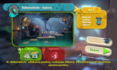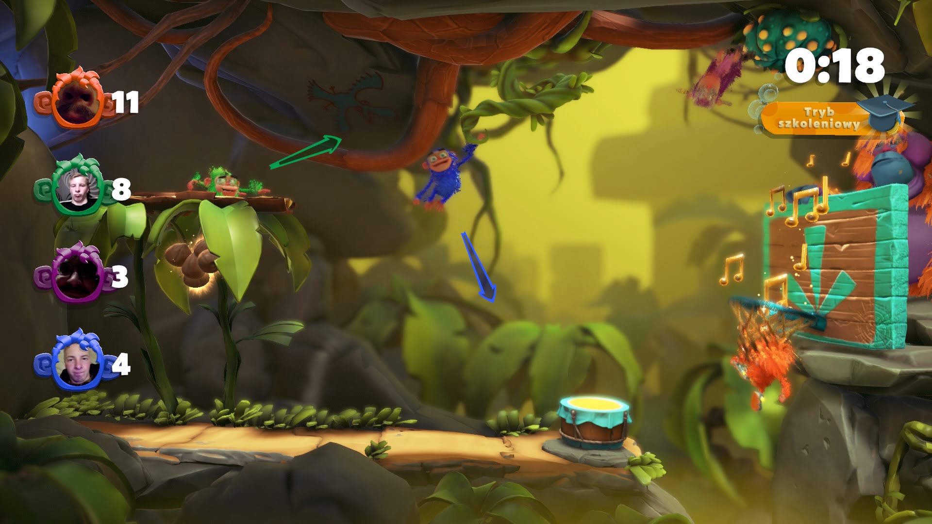 R: Ale w co konkretnie przyjdzie nam pograć? Już spieszę z odpowiedzią! W Szymparty mamy dość sporą gamę minigierek, od biegu z przeszkodami, strzelania jak najdalej, poprzez rozbijanie dzbanów we wszelakiej formie, a na pływaniu w baseniku z wielkim orangutanem kończąc. W każdej z nich odnajdziemy przeróżne sterowanie i trudności, jakie gra stawia nam na drodze.