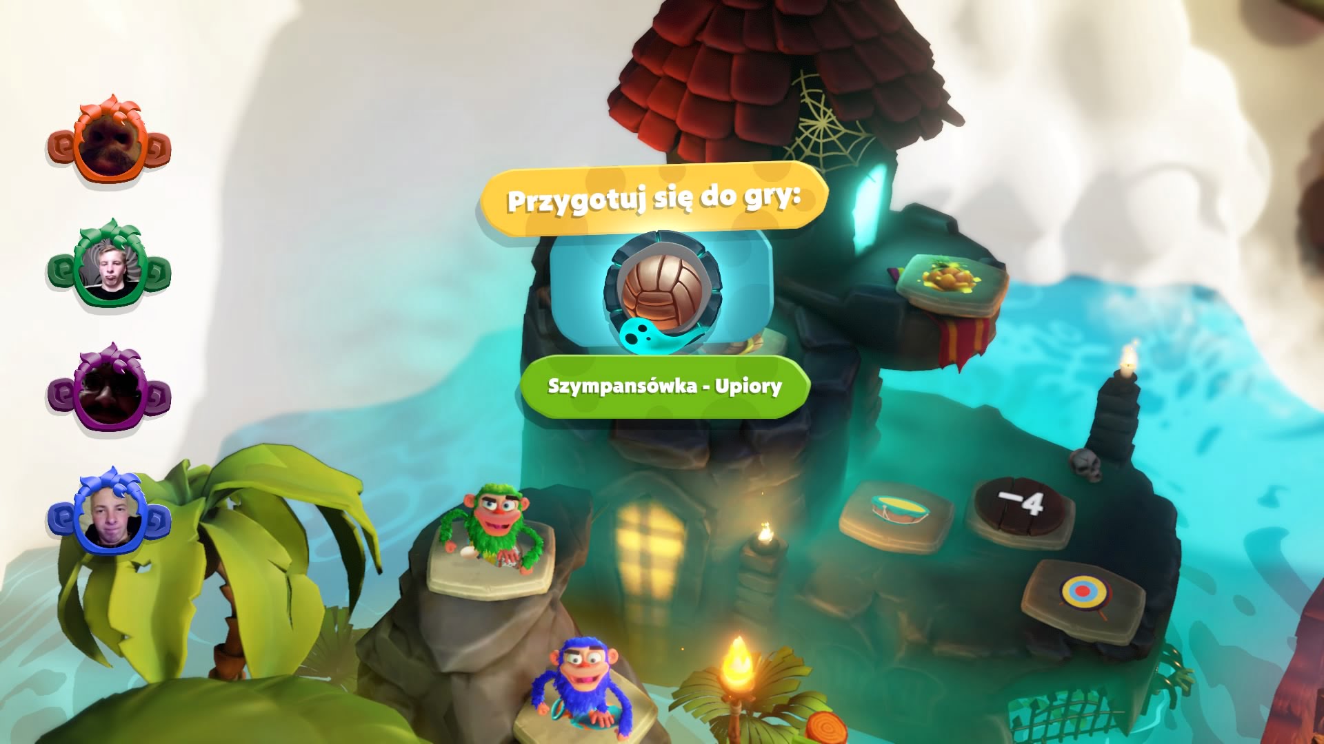 D: W grze mamy do wyboru cztery tryby: Gra planszowa, Wyzwanie Solo, Tryb losowy oraz Własna Gra. Skupmy się na tym pierwszym, bo w zasadzie on jest tutaj głównym daniem. Zasady są proste: nasze słodkie małpki wędrują po planszy, na której rozmieszczone są wszelakie minigierki, podczas których, w zależności od miejsca z którym je kończymy, otrzymujemy gwiazdki. Te następnie wymieniane są na ilość ruchów na planszy, które przybliżają nas do mety. Pole decyzyjne przysługuje ostatniej małpie, na której łapach spoczywa wirtualny rzut kością. W trakcie gry dochodzi więc do różnych przetasowań.