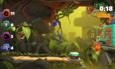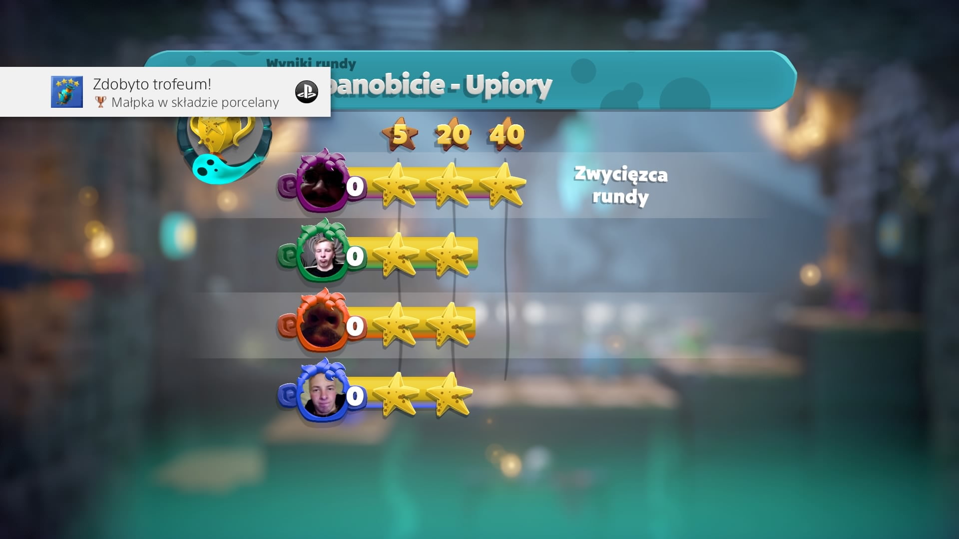R: O tak! Losowe drużyny są świetne. Nie tak łatwo złapać równy rytm w dynamicznej rozgrywce, tym bardziej, że z partnerem będziesz współpracować jedynie kilkanaście sekund, a następnym razem może być to ktoś zupełnie inny. Warto również wspomnieć o systemie nagród, które oferuje graczom Szymparty. Otóż każda zdobyta gwiazdka jest skrupulatnie liczona przez aplikacje w telefonie, która w regularnych odstępach będzie nagradzać nas specjalnymi wyglądami dla naszych małpiatek. I tutaj najlepsze: ów wyglądy są przypisywane do danego telefonu, a nie do konsoli, na której rozgrywaliśmy partię!