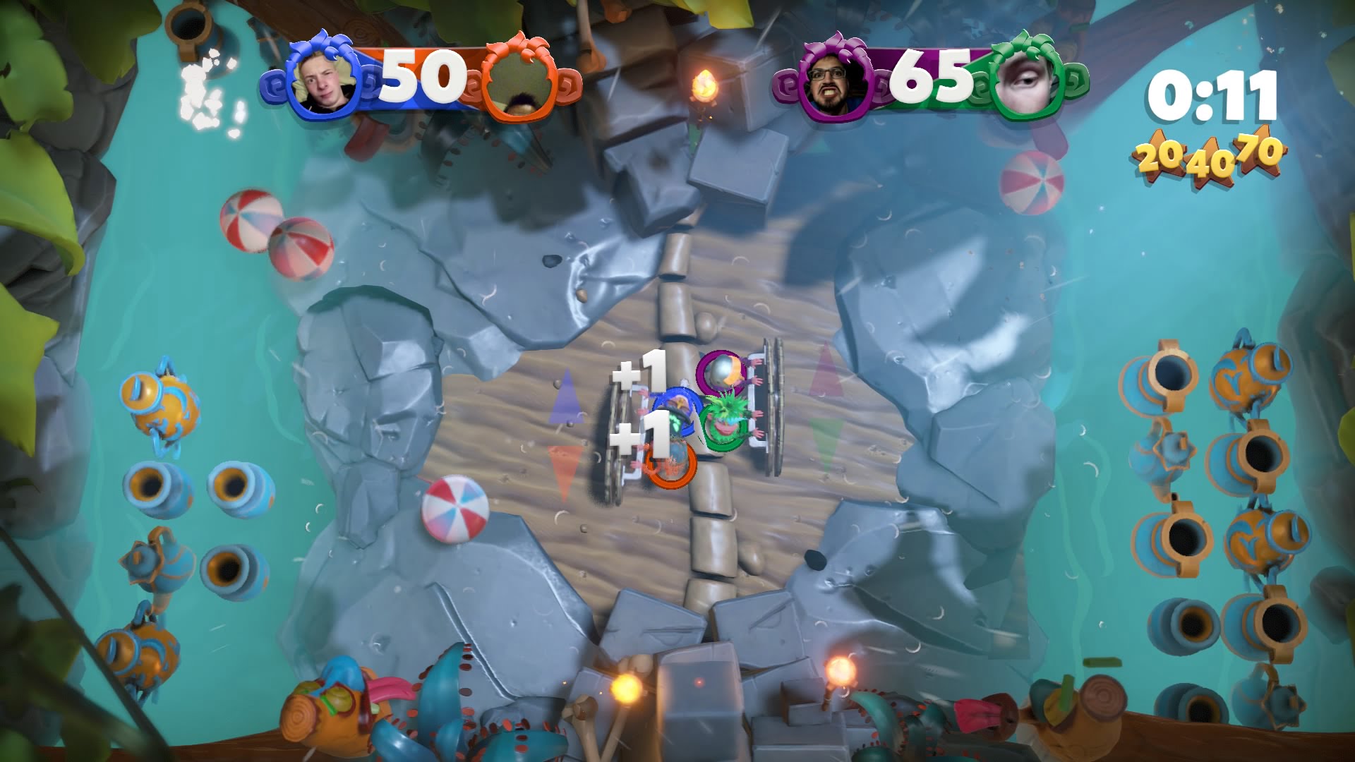 D: W zależności od tego, w którym miejscu na planszy rozgrywana jest minigierka, przyjdzie nam się zmagać ze znajomymi w różnych środowiskach. W nich czyhają na nas różne przeszkody w postaci upiorów, czarodziei, czy kosmitów. Cieszy zatem fakt, że mimo to, że zdarza się nam grać w tę samą minigierkę, to jednak rozgrywać się ona może w innych warunkach. To, czego brakowało mi w takim Frantics, to możliwość gry zespołowej. W Szymparty niektóre minigry będą losowo łączyć graczy w drużyny i przekonają się oni, że prawdziwa współpraca to klucz do sukcesu!