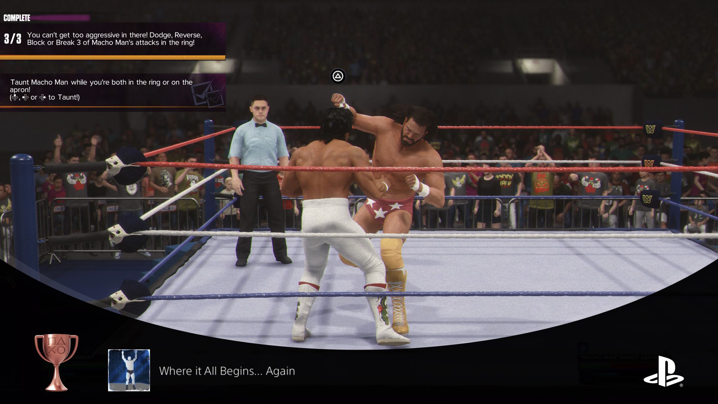 Showcase to nowa, lecz nieco okrojona wersja 30 Years of Wrestlemania, którą dostaliśmy w WWE 2K14. Dlaczego okrojona? Bo mamy zaledwie 21 pojedynków, nie ze wszystkich WM’ek. Oczywiście, są to niby ikoniczne starcia (choć ja bym kilka wyrzucił np. Shawn Michaels vs Kurt Angel, zamieniłbym na Triple H vs Undertaker z Wrestlemanii 28), lecz narracja jest świetna. Dodatkowo nie mamy zbyt wielkiej ilości objectivów do wykonania jak w poprzedniej części, nie ma też ich za mało co daje świetne wyważenie. Brakuje mi jednak tego, co mnie wielce cieszyło w grze sprzed dekady – oryginalnego komentarza. Jest to jednak spowodowane tym, że ówczesny komentator Jim Ross komentuje gale AEW. Zabrakło mi też walki Breta Harta z Yokozuną czyli kultowego Montreal Screwjob. Spowodowane jest to tym, że rok temu wypłynęły brudy na Vince’a McMahona i ograniczono jego obecność w grze do minimum. Z tego samego powodu Brock Lesnar jest też zawodnikiem showcase only – co w moim mniemaniu jest bez sensu.