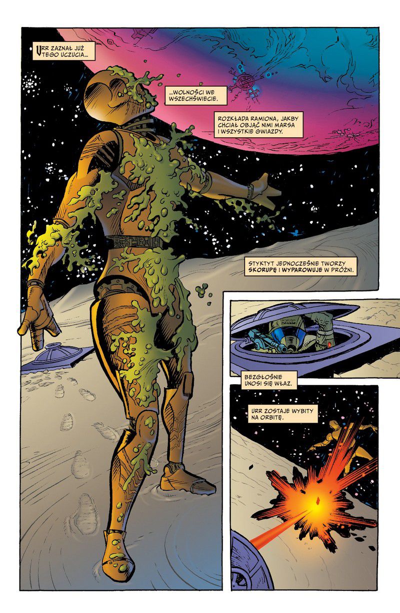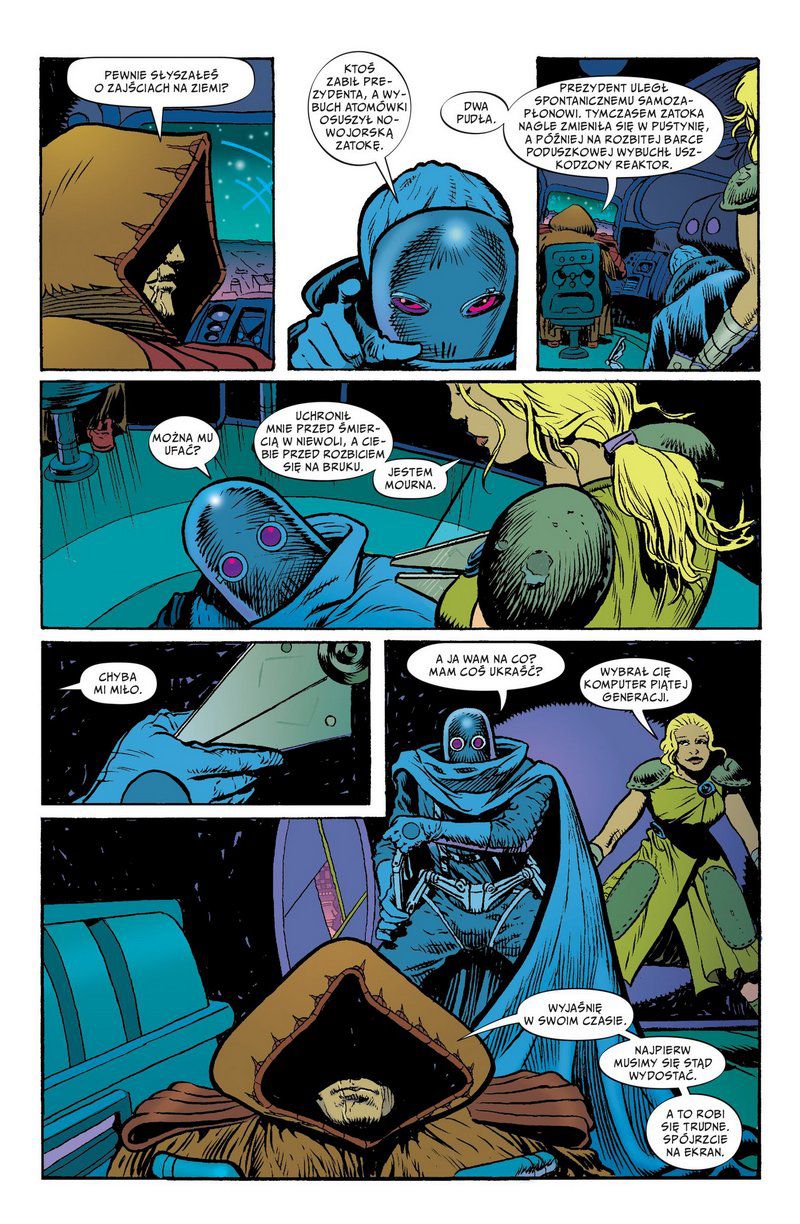 Paul Chadwick nadał historii ducha staroszkolnych opowieści SF, gdzie fantazja wymieszana była z ambicją przedstawienia czegoś więcej niż brawurowej historii. W jego pracach wyczuwalny jest mocny wpływ twórczości Jacka Kirby’ego, ale też echa dzieł Ralpha McQuirre’a czy Jima Starlina. Światy, z których pochodzą bohaterowie, są cudownie nieracjonalne na space operowy sposób. Wyprawa w przeszłość ma przebieg fantazyjny, łączący w sobie pulpowy heroizm z czymś jak najbardziej na serio. Chadwick wiele razy zachwyca czystą, nieskrępowaną akcją po to, by w kolejnych kadrach dać nam pełne powagi i patosu dramatyczne sceny. Coś, co docenią miłośnicy sztuki komiksowej, jak i fani urokliwego retro SF.