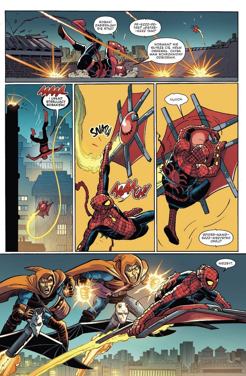 I tu mam kolejny problem, bo o ile przeważnie lubię kanciastą kreskę młodszego Romity, a nawet ciepło wspominam kilka jego dokonań związanych ze Spider-Manem, to czasem mam wrażenie, że artysta ten pracuje po łebkach. Że nauczył się już tak „optymalizować” swoją pracę, by przyjąć jak najwięcej zleceń i zrealizować je w jak najkrótszym czasie, na czym cierpią czasami i detale, i perspektywa, i anatomia. Ale artysta nadal ma power w łapie i potrafi zaskoczyć niezapomnianym kadrem nawiązującym do kultowych momentów z życia Spidera.