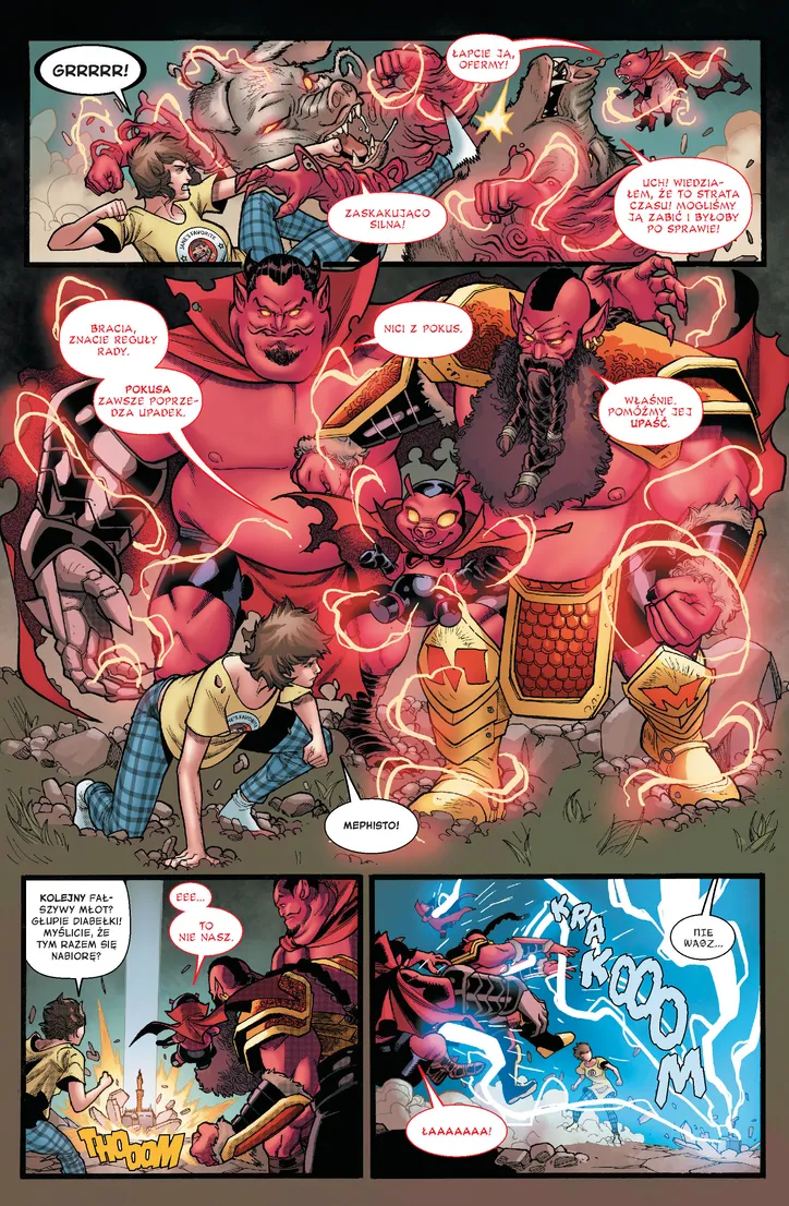 W poprzednich tomach dowiedzieliśmy się, że matką Thora nie jest, jak wszyscy dotąd myśleli, Freya, a Phoenix. Nie chodzi oczywiście o Jean Grey, a raczej o awatar kosmicznej mocy sprzed wielu tysięcy lat. Rozmowę Gromowładnego i Starka przerywa jednak gwałtowny atak. W tym samym momencie ofensywa odbywa się też na bazę Avengers i choć herosi mają w swoim składzie takie potęgi jak Starbrand i Phoenix/Echo, to siły są dość wyrównane. Pojawia się też epizod z Jane Foster, której najwyraźniej brakuje mocy Thor…