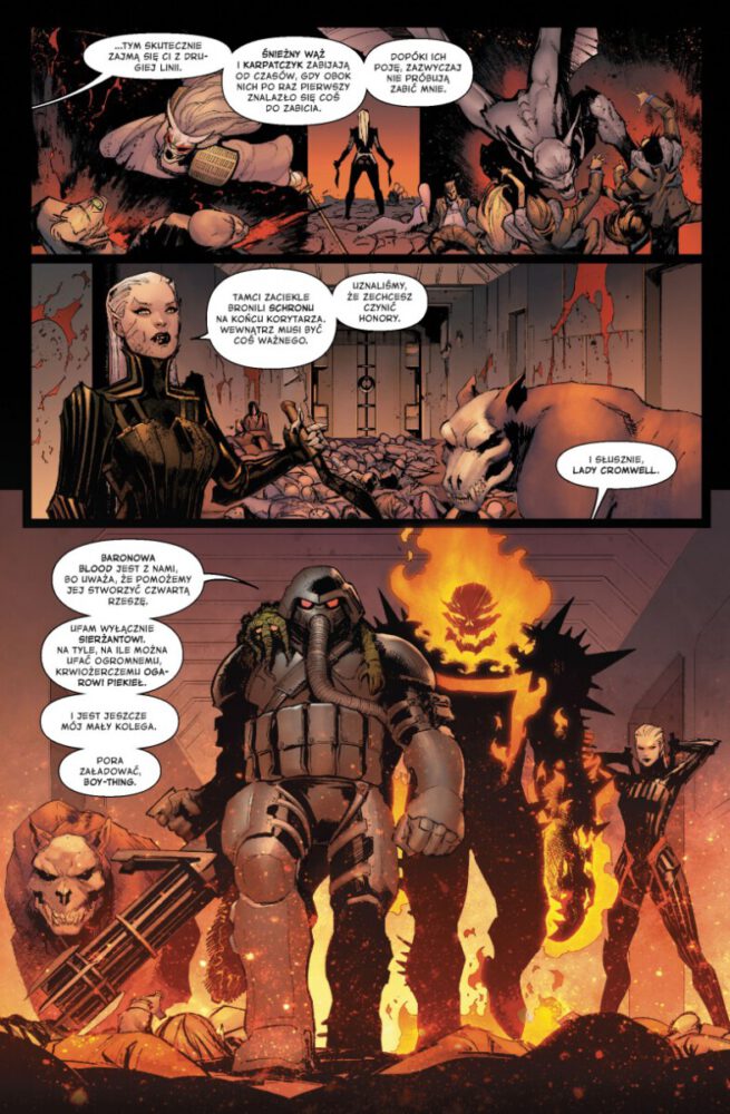 Wampiry w świecie Marvela może nie odgrywają znaczącej roli, ale mają swoje poletko, które czasem wydaje krwawy plon. Blade to najbardziej znaczący ich przedstawiciel, ale i Dracula to nie byle łotrzyk z prowincji. W Avengers tom 3: Wojna wampirów Jason Aaron nie serwuje nam mrocznej, ocierającej się o grozę opowieści, a raczej coś, co mogłoby pojawić się w nadchodzącym filmie z Mahershalą Alim w roli Erica Brooksa, ale jest jedna chwila, której konwencja wyróżnia ją na tle reszty wydarzeń. Rozmowa Irona Mana z Draculą to coś, co warto sobie zapamiętać, choćby dlatego, że stary wampir w końcu pokazuje kły i wychodzi ze strefy komiksowego straszydła.