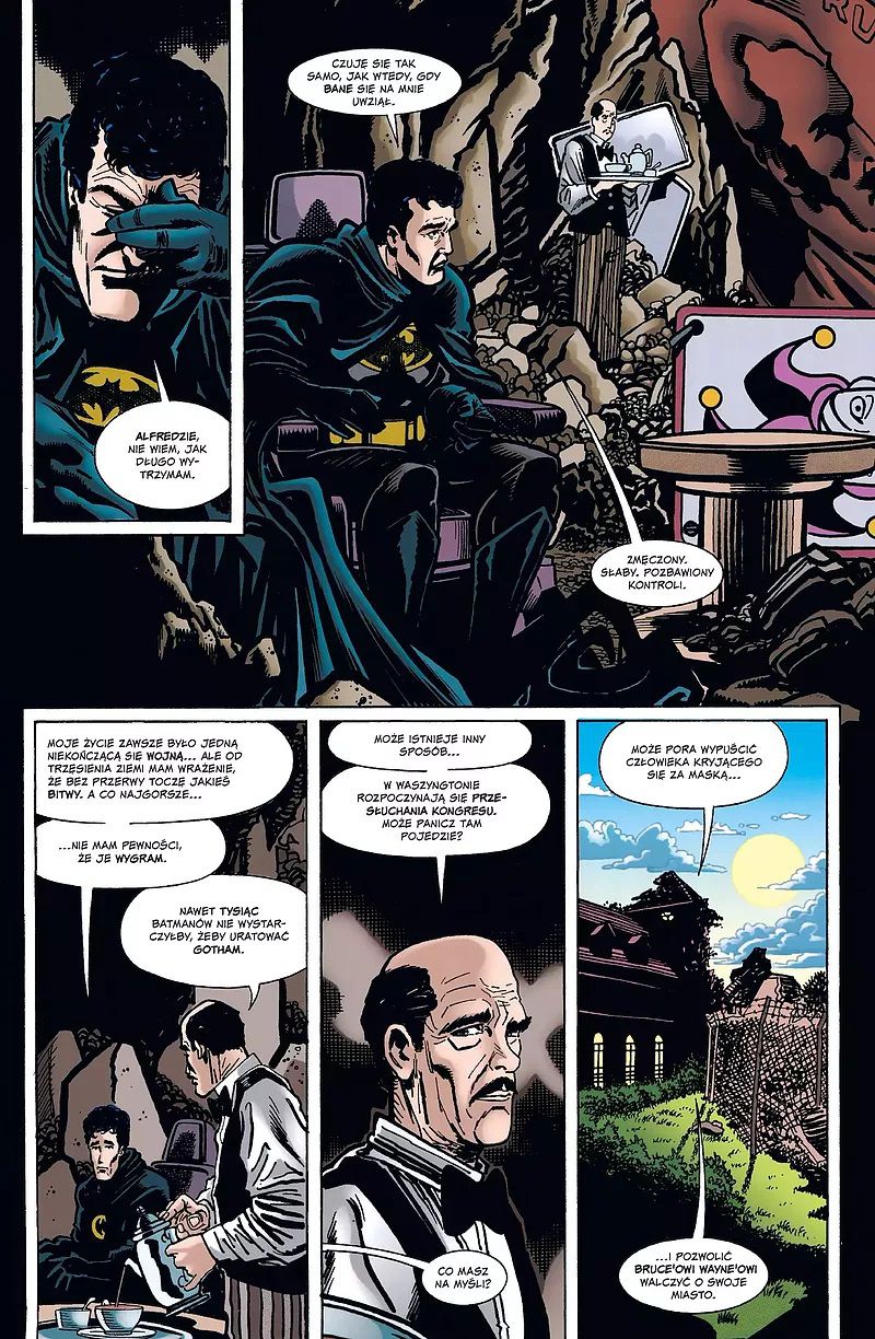 Wszystko to, co zachwycało w dwóch poprzednich tomach, praktycznie nie pojawia się w tym. Nie ma bohaterskich opowieści, dramatycznych historii, nie ma zapadających w pamięć rysunków. Jest za to dużo Azraela i jednego z najgorszych antagonistów, jakich widziało DC Comics. Zmagania Bruce’a z politykami i dobra historia o rezydentach Arkham to jednak nieco za mało, by przykuć uwagę czytelnika, przez co oceniam ten tom wyraźnie niżej i stwierdzam, że czuję się zawiedziony. Oby kolejne tomy zamazały to wrażenie.