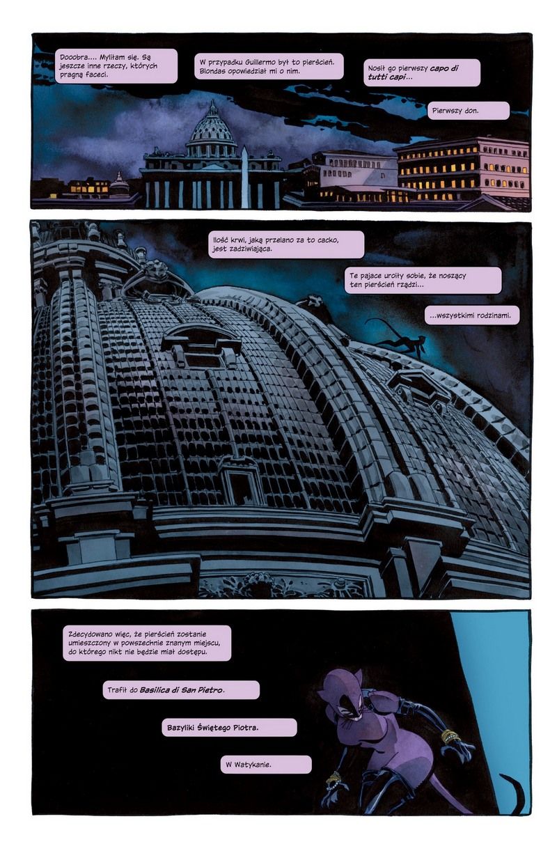 Selina wyrusza do Rzymu. Nie w celach turystycznych. ale by dowiedzieć się co nieco o Carmine’ie Falcone’em i jego powiązaniach z nią samą, bliższych niż komukolwiek się zdaje. Na miejscu szybko zwraca na siebie uwagę lokalnych mafiozów. Trochę z własnej winy, bo śmierć kluczowego dona pechowo miała miejsce właśnie podczas jej wizyty. Wprawdzie u jej boku pojawiają się mniej lub bardziej użyteczni sojusznicy, ale Rzym jest równie groźny, a może nawet groźniejszy niż Gotham.